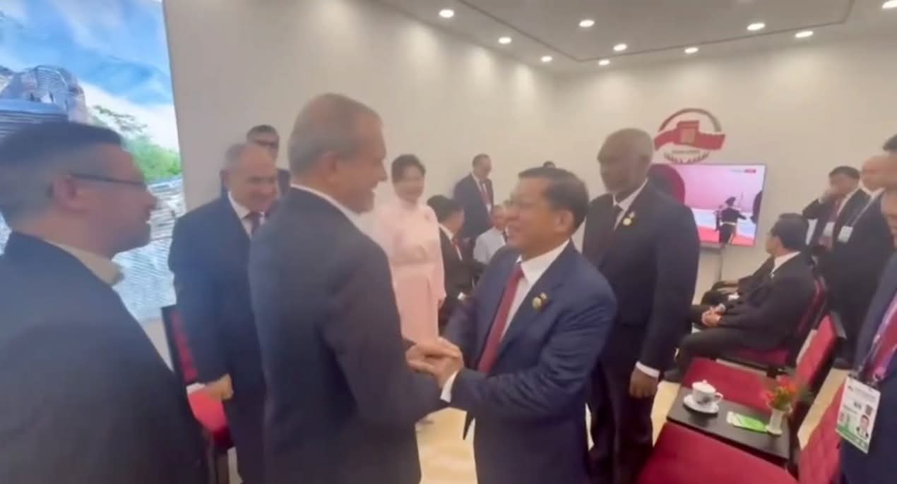 တရုတ်မှာကျင်းပတဲ့ စစ်ရေးပြအခမ်းအနားကိုရောက်နေတဲ့ အာဏာသိမ်းစစ်ကောင်စီခေါင်းဆောင်ဟာ အခြားသော နိုင်ငံတွေက ခေါင်းဆောင်တွေကို လိုက်လံနှုတ်ဆက်နေတဲ့ ရုပ်သံတွေ စစ်တပ်ဝါဒဖြန့် လူမှုကွန်ရက်တွေက ဖြန့်ဝေနေကြပါတယ်။