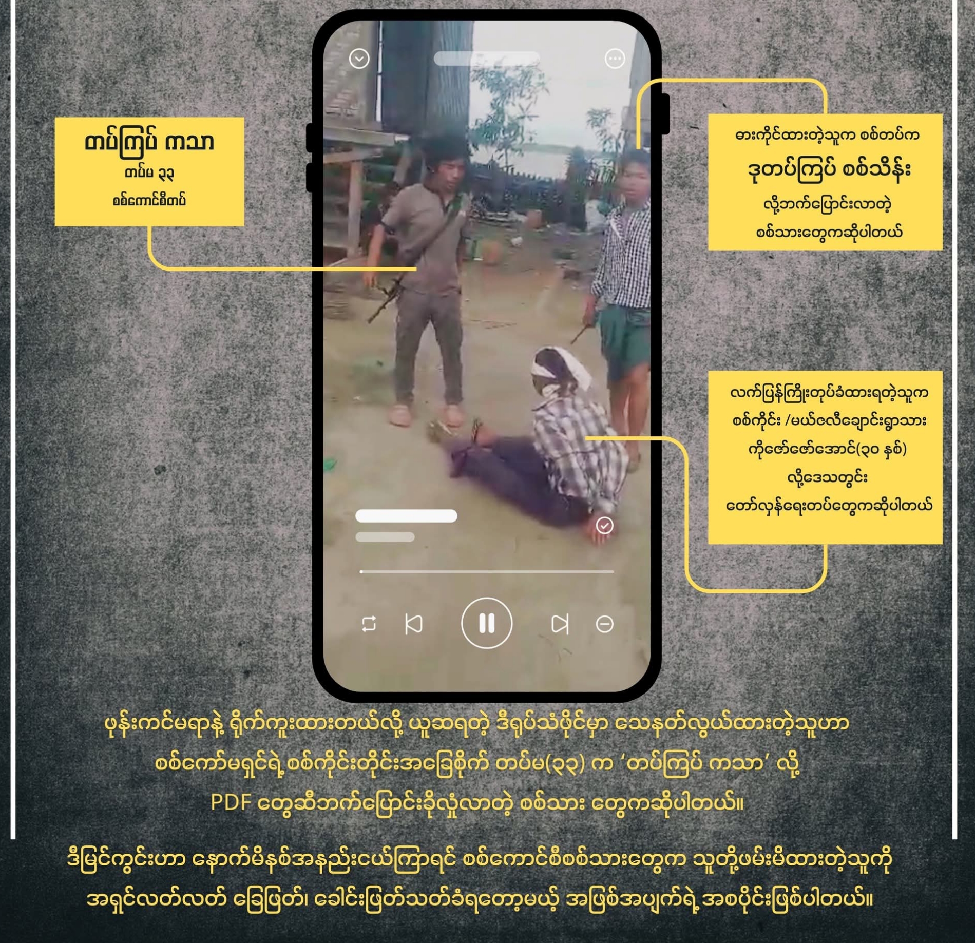 အာဏာသိမ်းတပ်က အဆိုပါဒေသအတွင်း စစ်ကြောင်းထိုးစဉ် ဖမ်းဆီးရမိသူတို့ကို ကိုယ်လက်အင်္ဂါအစိတ်ပိုင်းများ ဖြတ်တောက်သတ်ဖြတ်သည့် ဖြစ်စဉ် အများအပြားရှိနေသော်လည်း စစ်တပ်က ၎င်းတို့လက်ချက်မဟုတ်ဟု ငြင်းဆန်တတ်သည်။ သို့သော်လည်း အထက်ပါဖြစ်စဉ်တွင် စစ်တပ်ရိုက်ကူးထားသော ရုပ်သံမှတ်တမ်းများ ပေါ်ထွက်လာရာ စစ်တပ်၏ရာဇဝတ်မှုတစ်ခုနှင့် ပတ်သက်ပြီး ခိုင်မာသည့် သက်သေအထောက်အထား ဖြစ်လာသည်။