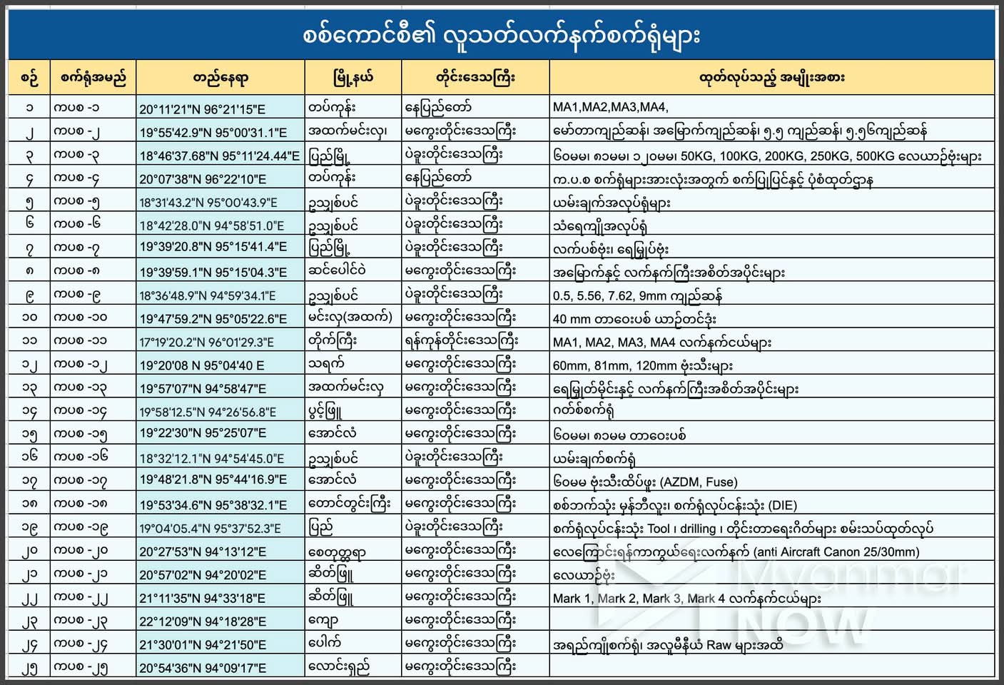 “အဓိကတော့ မစခ (အမြောက်တပ်စခန်းကွပ်ကဲမှုဌာနချုပ်) ၉၀၅ နဲ့ ပဒါန်းတပ်နယ်အတွက် 120 မမ လက်နက်ကြီးကျည်ဆန်တွေအပါ အရံလက်နက်ခဲယမ်းတွေ ထပ် ဖြည့်နေတာရှိတယ်”