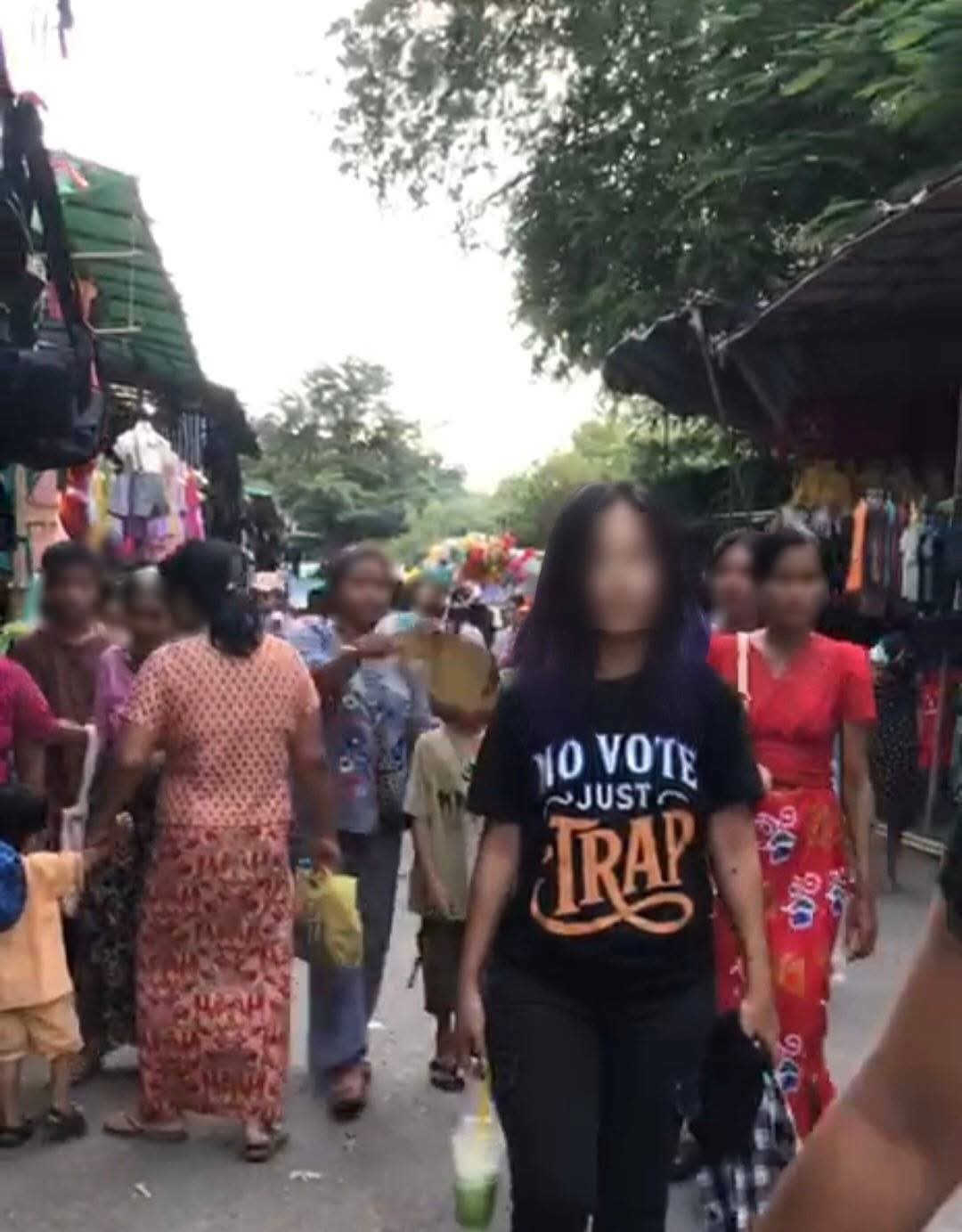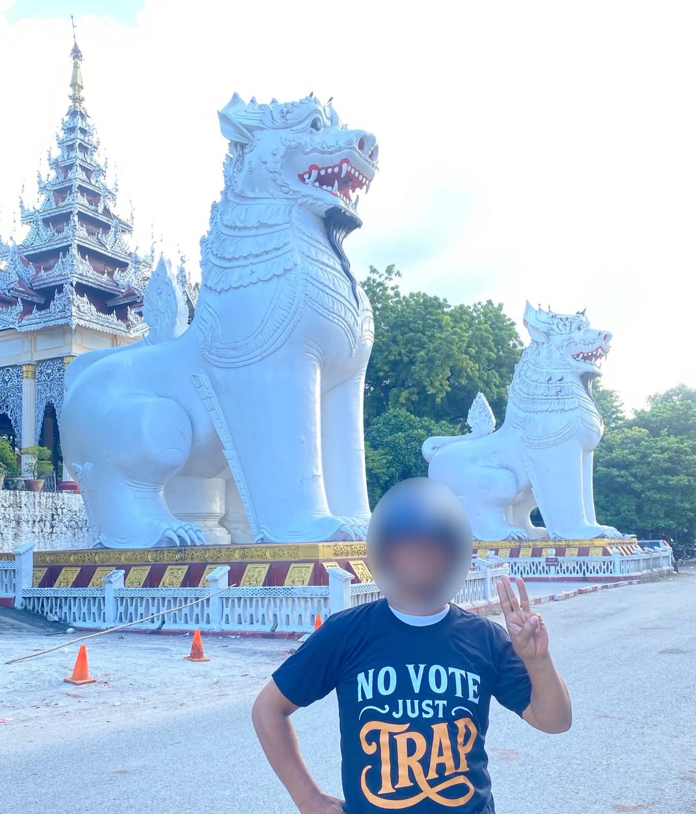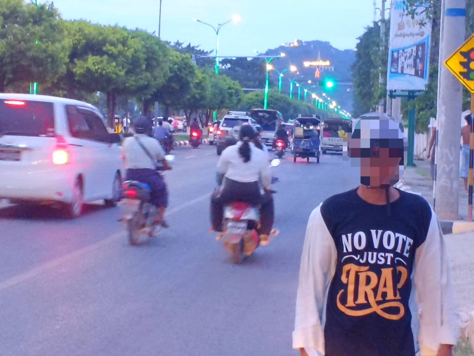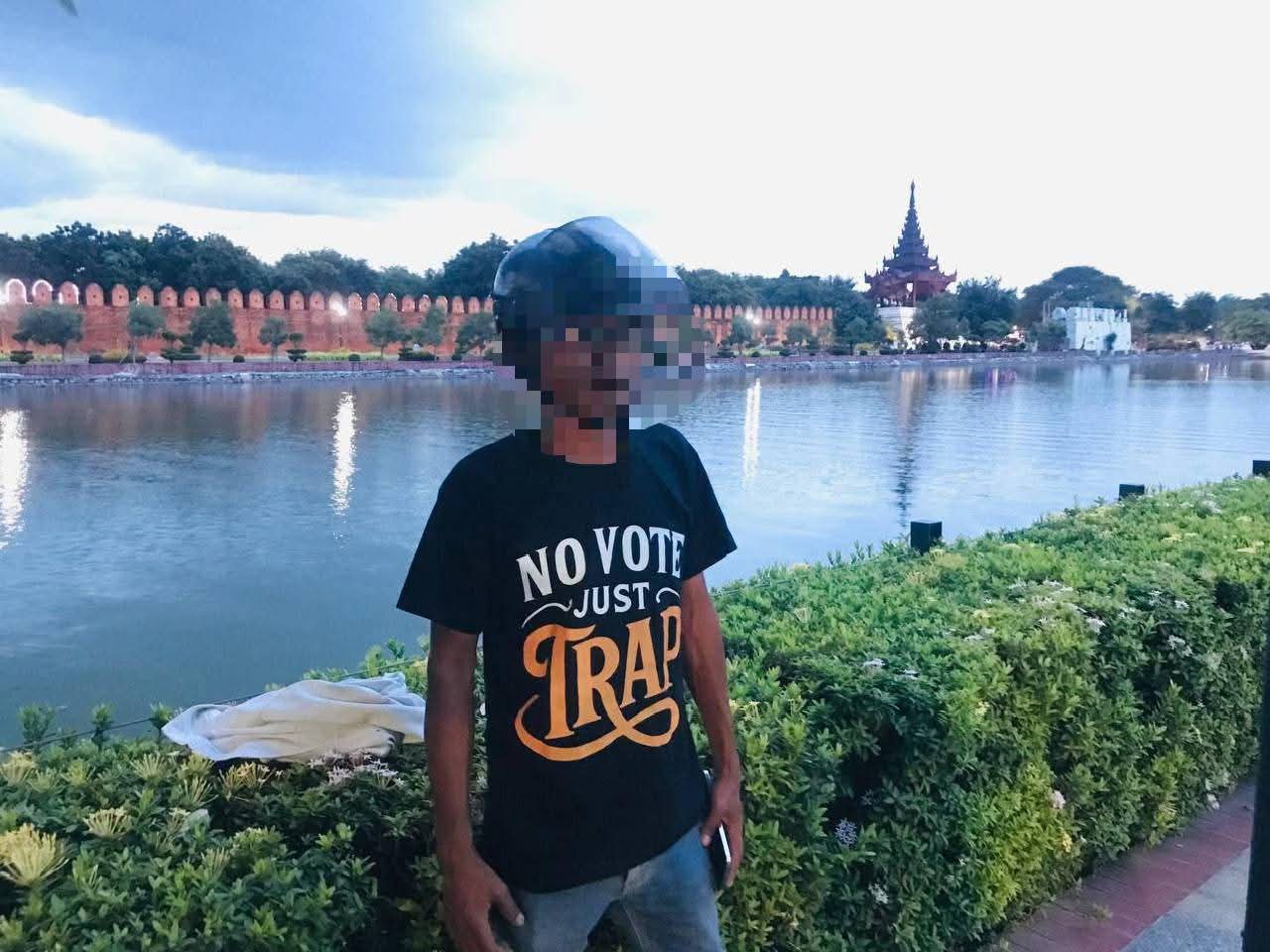 No Vote Just Trap “မဲမပေးနဲ့ ထောင်ချောက်” စာတန်းပါ အင်္ကျီကိုဝတ်ဆင်ပြီး မန္တလေးရဲ့ အထင်ကရ နေရာတွေမှာ လက်သုံးချောင်းထောင် ဆန္ဒထုတ်ဖော်ခဲ့ကြတာဖြစ်ပါတယ်။