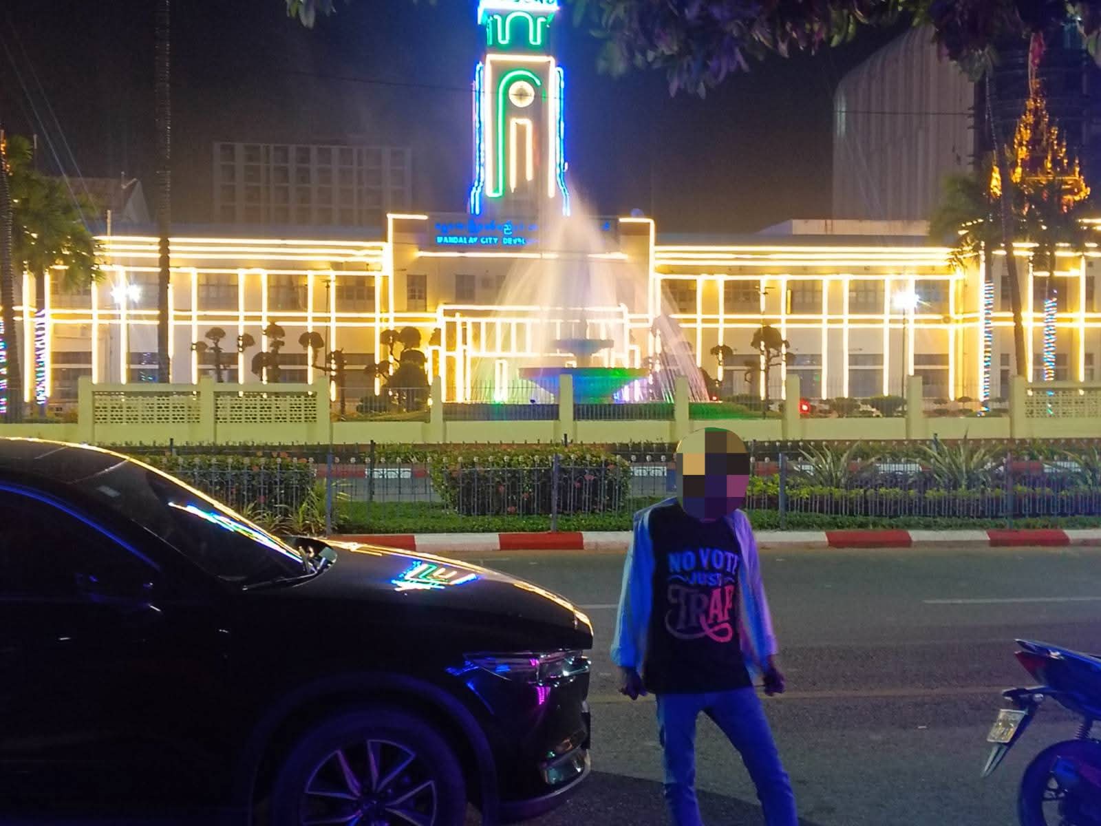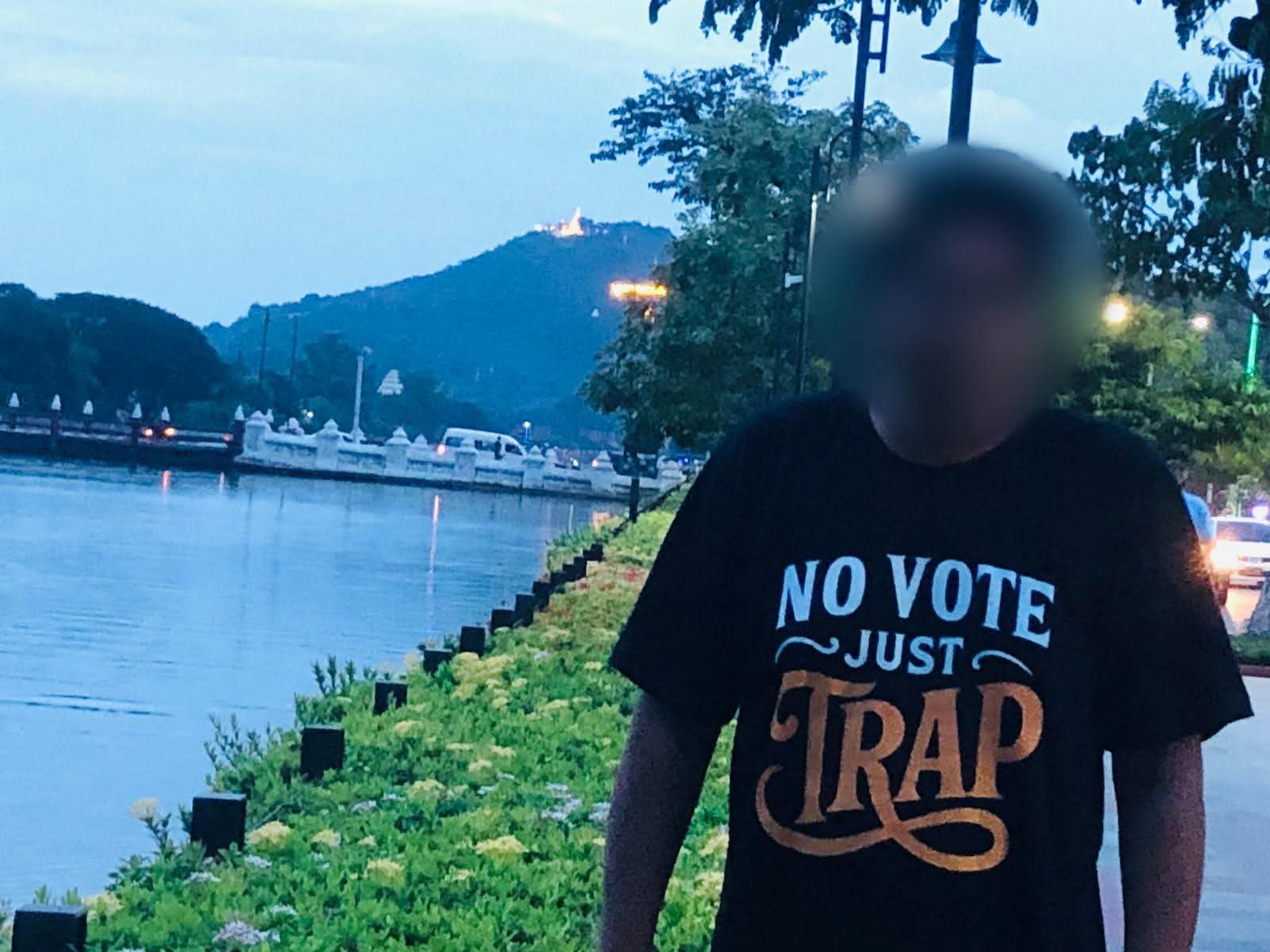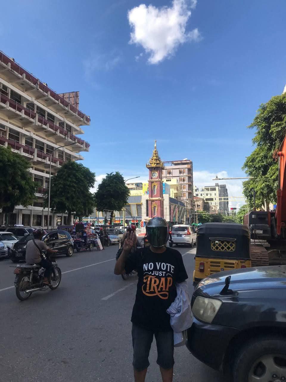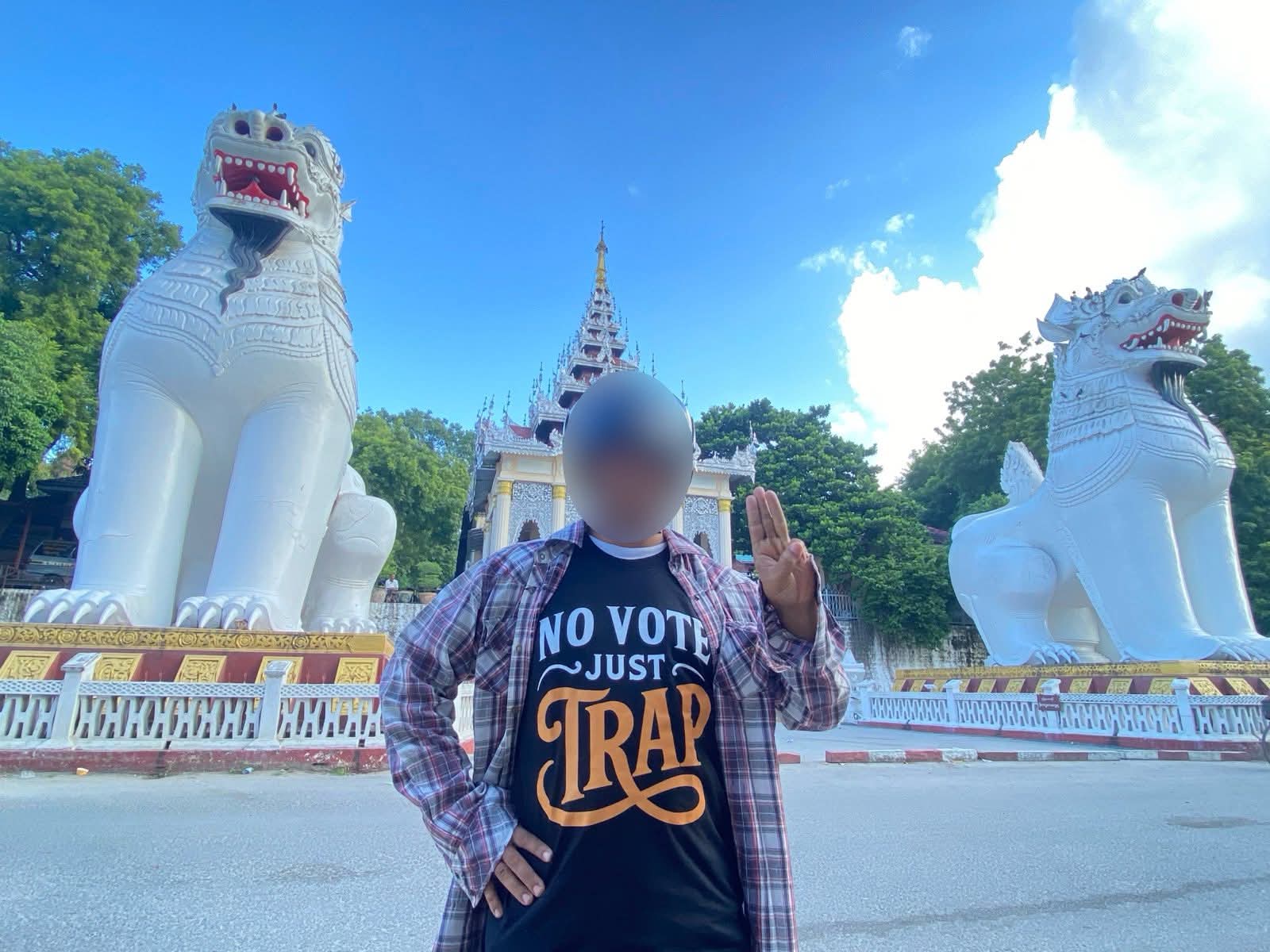 No Vote Just Trap “မဲမပေးနဲ့ ထောင်ချောက်” စာတန်းပါ အင်္ကျီကိုဝတ်ဆင်ပြီး မန္တလေးရဲ့ အထင်ကရ နေရာတွေမှာ လက်သုံးချောင်းထောင် ဆန္ဒထုတ်ဖော်ခဲ့ကြတာဖြစ်ပါတယ်။