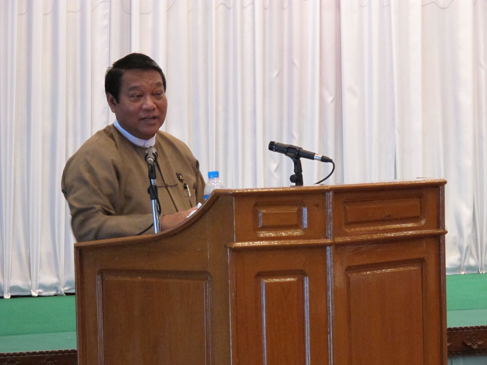ကြံ့ခိုင်ရေးပါတီဟု လူသိများသည့် စစ်တပ်ကျောထောက်နောက်ခံ ပြည်ထောင်စုကြံ့ခိုင်ရေးနှင့် ဖွံ့ဖြိုးရေးပါတီ (USDP) က သူ့ကို ခေါင်းဆောင်အဖြစ် အတည်ပြုပေးလိုက်သည့် နှစ်ရက်တာ နေပြည်တော်ညီလာခံအပြီး အောက်တိုဘာ ၅ သတင်းစာရှင်းလင်းပွဲတွင် ၎င်းက ယခုလို ကြုံးဝါးသည်။