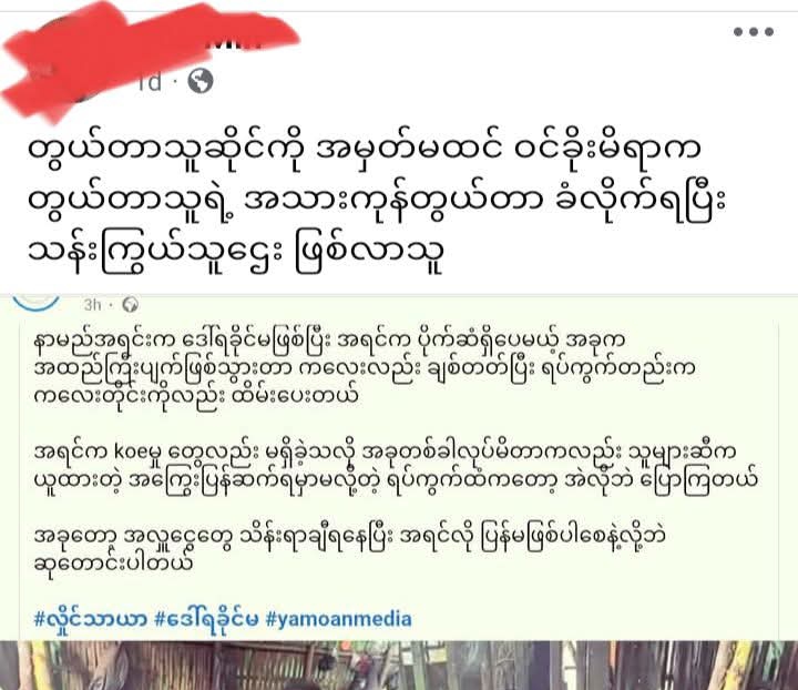 ဆယ်လီဖြစ်သွားပြီမို့လို့ ကြော်ငြာတွေ ခေါ်ရို-က်လို့ရပြီဖြစ်ကြောင်း ကြေညာခဲ့တဲ့ လှိုင်သာယာသူလေး ဒေါ်ရခိုင်မ
