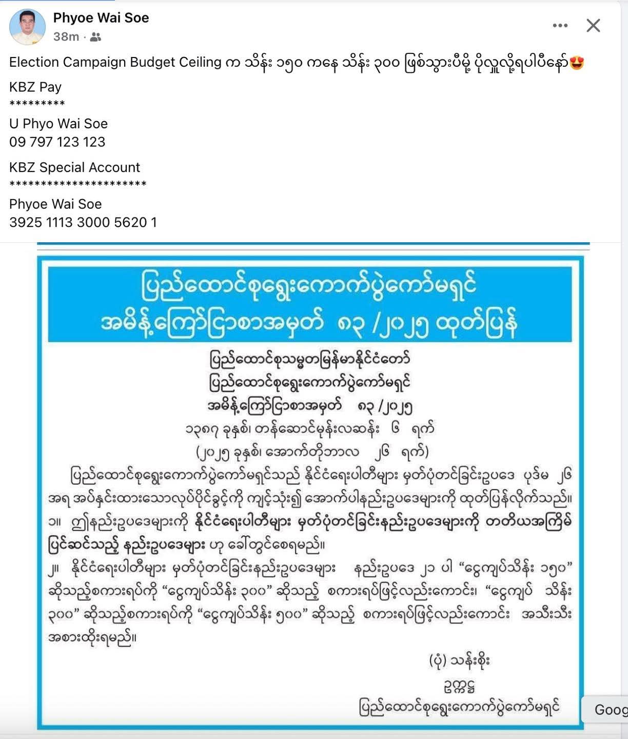 “ရွေးကောက်ပွဲ အသုံးစရိတ် Friend Only ဖြင့် အလှူခံနေတဲ့ ကိုကိုကြီးရဲ့ ပြည်သူ့ပါတီကိုယ်စားလှယ်လောင်း”