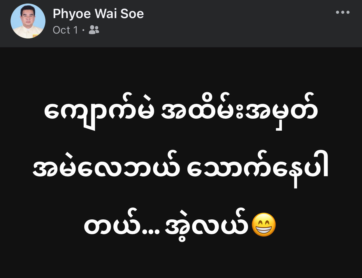 လှူရင် လှူကြ မလှူရင် အမတ်ဖြစ်သွားရင် ဘာမှလုပ်မလောက်ဘူးဆိုတဲ့အထာ။