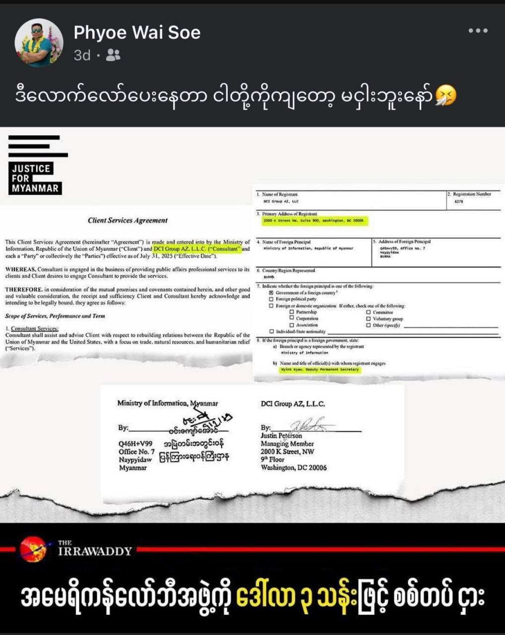 “စစ်တပ်၏ လေကြောင်းမှ ဗုံးကြဲမှုများ ရွာစဉ်လိုက်မီးရှို့မှုများသည် လုပ်ကိုလုပ်ရမည့်အရာဖြစ်ပြီး တိုင်းပြည်တည်ငြိမ်အောင် ရွာလုံးကျွတ်ရှင်းသင့်ရင်ရှင်းရမည်” ဟု စစ်လော်ဘီ ဖြိုးဝေစိုးက ထုတ်ဖော်ပြောဆိုခဲ့သည်။