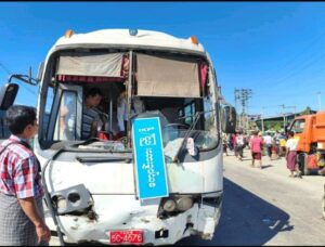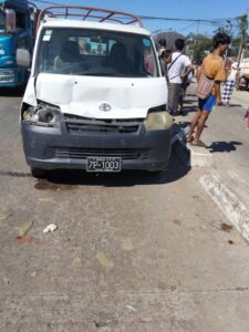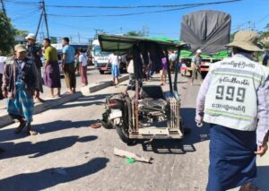 ကျောင်းကြို/ပို့ယာဉ်တံဆိပ်နဲ့ မီနီဘတ်စ်တစ်စီး ဘရိတ်ပေါက်အရှိန်လွန်ကာ ဘေးတွဲသုံးစီးအပါအဝင် ယာဉ် ၆ စီး ဆင့်ကဲတိုက်မှုဖြစ်ပွားပြီး ကလေးငယ်တစ်ဦး၊ လူကြီးတစ်ဦးသေဆုံးကာ လူနှစ်ဦးဒဏ်ရာရရှိခဲ့တဲ့ ဖြစ်စဉ် ဒီနေ့ မနက် ၉ နာရီကျော်အချိန်ခန့်က ရန်ကုန်တိုင်း၊ လှိုင်သာယာအရှေ့ပိုင်းမြို့နယ်၊ အလယ်ရွာမှတ်တိုင်အနီးမှာ ဖြစ်ပွားခဲ့တယ်လို့ မျက်မြင်တွေ့ရှိသူနယ်ခံတစ်ဦးက ပြောပြပါတယ်။