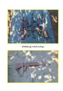 ကျားဖြန့်များနှင့်အတူ MA-1 သေနတ် တစ်လက်၊ MA-13 သေနတ် တစ်လက်၊ AK-12 သေနတ် တစ်လက်၊ ကာဘိုင် သေနတ် တစ်လက်၊ WICHESTER 12 V သေနတ် တစ်လက်၊ ၉ မမကျည် ၁၀ တောင့်၊ 12 V ကျည် ၂တောင့်၊ ၉ မမကျည်အိမ် ၁ ခု၊ AK ကျည်အိမ် ၁ ခုနှင့် ကာဘိုင်ကျည်အိမ် ၁ ခုတို့ကို သိမ်းဆည်းရမိခဲ့သည်ဟု သိရသည်။