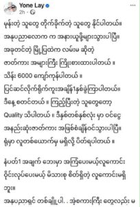 ထိုသို့ ရေးသားခဲ့ပြီးနောက် ၂ နာရီဝန်းကျင်အကြာတွင် အဆိုတော်ယုန်လေးက သူ၏ လူမှုကွန်ရက်မှ ပို့စ်ကို ပြန်လည် ဖြုတ်သွားခဲ့ပြီး ၎င်း ရိုက်ကူးထားသော “မြို့ပြထဲက လမ်းမ ” ရုပ်ရှင်မှာ လူမိုက်နှင့် ဂိုဏ်းစတားများအကြောင်း ရိုက်ကူးထားခြင်းဖြစ်သည်။