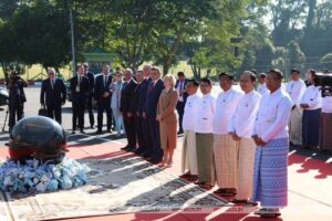 COVID 19 ကပ်ရောဂါကိုပင် ဗမာမှုပြုကာ ကိုဗစ် ၁၉ ဟု ခေါ်ခိုင်းခဲ့သည့် စစ်ခေါင်းဆောင်သည် ၎င်း၏ ဌာနချုပ် နေပြည်တော်၌ ဘီလာရုစ်ဘာသာ စကားဖြင့် မင့်စ် လမ်းဟူ၍ လမ်းတစ်ခုကို နာမည် ပေးခဲ့သဖြင့် လှောင်ပြောင်ခံနေရသည်။