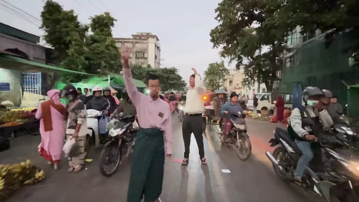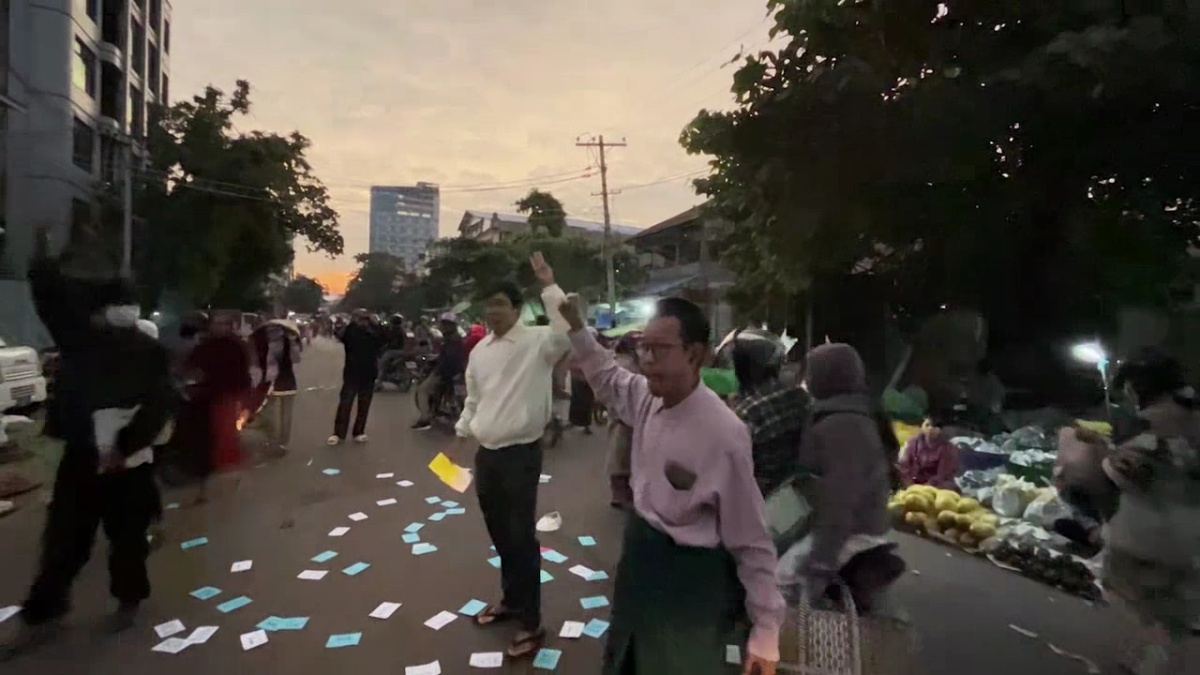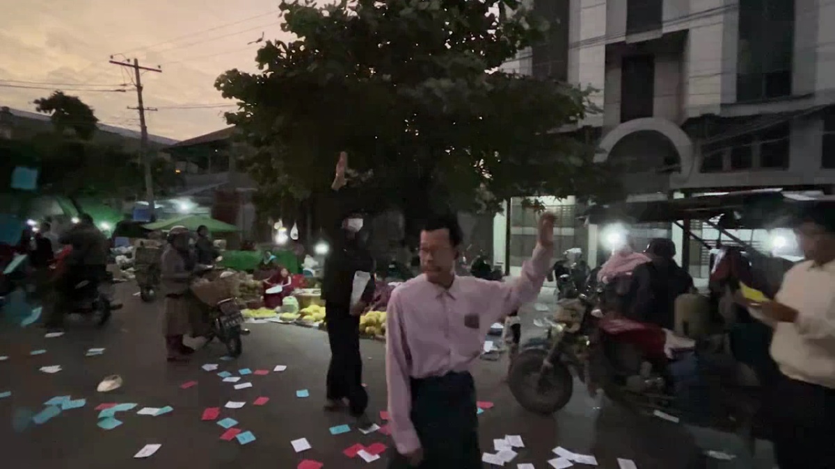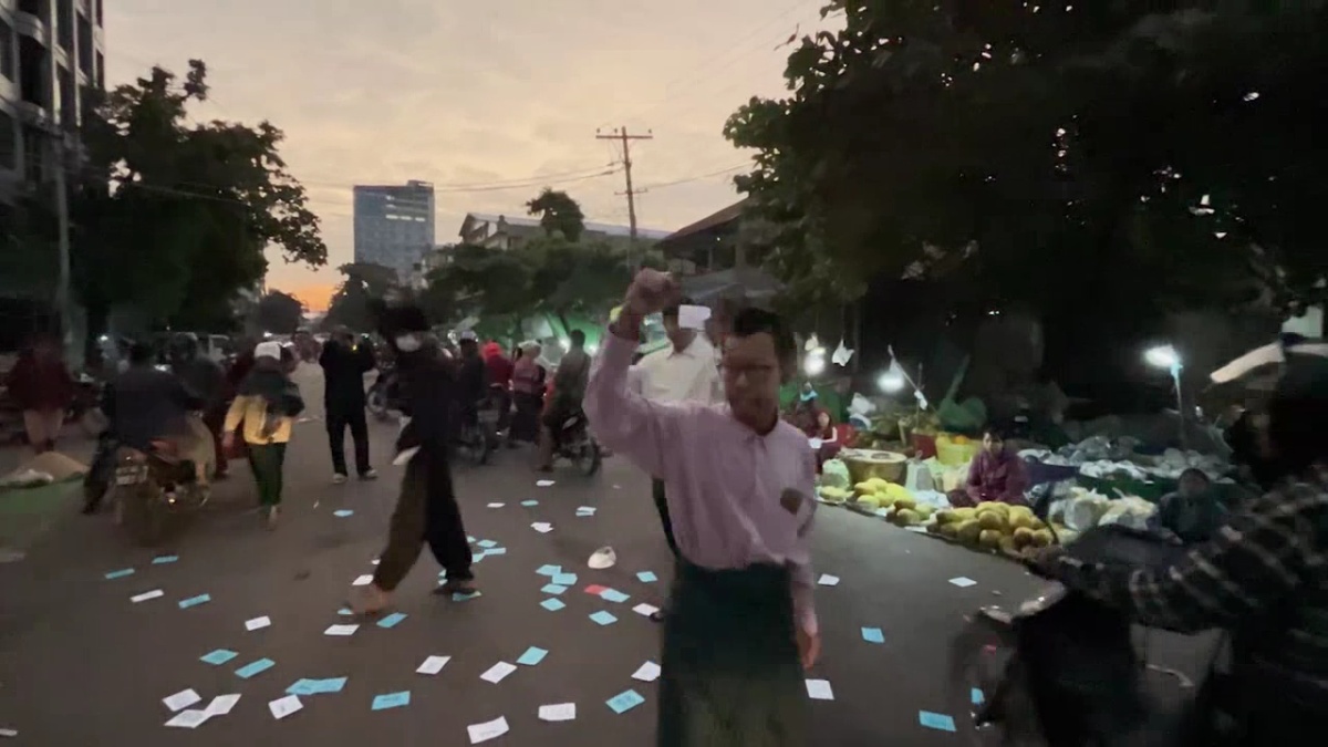မန္တလေးမြို့လယ် ဈေးချိုအနီး ဒေါက်တာတေဇာဆန်း ဦးဆောင်၍ အကြမ်းဖက် စစ်အုပ်စု၏ အတုအယောင် တရားမဝင် ရွေးကောက်ပွဲကို လူထုတရပ်လုံး ပြတ်ပြတ်သားသား ဆန့်ကျင်ကြရန် ဆန္ဒပြ (ရုပ်/သံ)