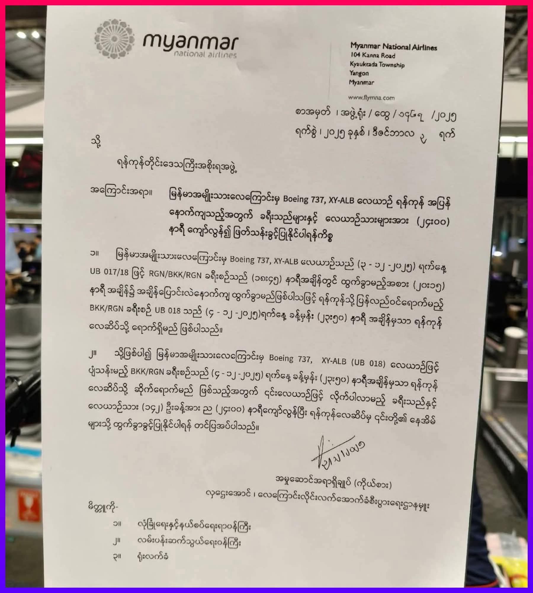 ဘယ်နိုင်ငံမှာမှ မရှိသေးတဲ့ လေယာဉ်ပျံ ဆိုက်ရောက်တာ မိုးချုပ်လို့ ခရီးသည်တွေ အိမ်ပြန်ဖို့ စာထုတ်ရတဲ့ ရန်ကုန်လေဆိပ်