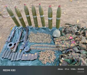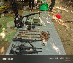 (မော်လိုက်မြို့နယ်တိုက်ပွဲမှာ စစ်ကောင်စီတပ်ထံကသိမ်းရတဲ့ ရှော့တိုက်ဒုံးတွေနဲ့ လက်နက်တွေ။ ဓာတ်ပုံ – Mawlaik Revolutions)
