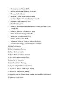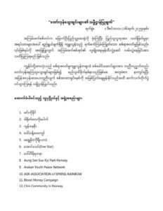 စစ်ရာဇဝတ်မှုကျူးလွန်တရားခံ စစ်ခေါင်းဆောင်တွေအား တညီတညွတ်တည်း တော်လှန်နေကြသူသွေးချင်းတွေဖြစ်လို့ ဘယ်သူထိခိုက်နစ်သည်ဖြစ်စေ အတူခံစားနာကျင်ရပြီး အပြန်အလှန်အားပေးကူညီလျက် စစ်အာဏာရှင်စနစ်ကို အမြစ်ပြတ်ချေမှုန်းနိုင်တဲ့အထိ ဆက်လက်တိုက်ပွဲဝင်သွားကြဖို သန္နိဌာန်ပြုကြောင်းလည်း တော်လှန်သွေးချင်းများ သန္နိဌာန်ပြုချက်မှာ ဖော်ပြထားပါတယ်။