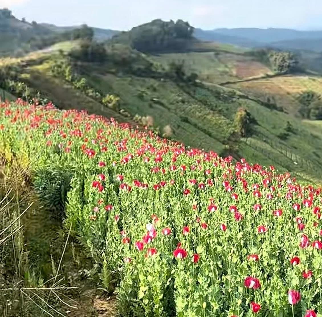 ဒါပေမယ့် မြန်မာနိုင်ငံမှာတော့ လှပတဲ့ ဘိန်းစိုက်ခင်းတွေဟာ လည်ပတ်သွားစရာနေရာတစ်ခုလိုဖြစ်နေပြီး နိုင်ငံကို အုပ်ချုပ်နေတဲ့ စစ်ကောင်စီတပ်ကပင် အဲလုပ်ငန်းမှာ ပါဝင်ပတ်သတ်နေကြောင်းပါခင်ဗျား…။