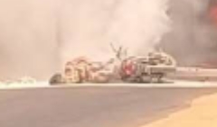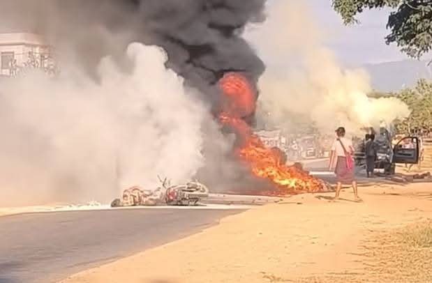 ရမည်းသင်းမှာ ဆီပုံးတွေတင်လာတဲ့ကား ဆိုင်ကယ်ဝင်တိုက်လို့ မီးလောင်ပြီး ကိုယ်ဝန်ဆောင်အမျိုးသမီးအပါအဝင် ၃ ဦး သေဆုံး