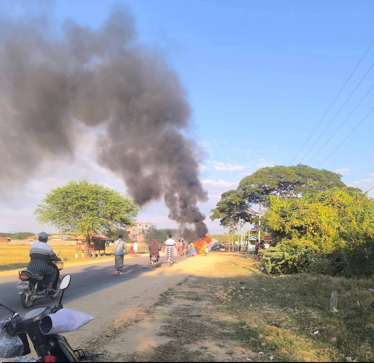 ဒီဇင်ဘာ ၂၁ ရက် ညနေ ၄ နာရီကျော်က ရမည်းသင်းမြို့နယ်၊ စံပြသိမ်ကုန်းရွာ၊ ကြက်ရှာလမ်းခွဲအနီးမှာ ဆီပုံးတွေနဲ့ ကုန်တွေတင်လာတဲ့ကားကို ဆိုင်ကယ်တစ်စီးက ဝင်တိုက်မိခဲ့ကြောင်း၊ အဲဒီလို ဝင်တိုက်မိရာကနေ ဆီပုံးတွေပေါက်ကာ မီးလောင်ကျွမ်းမှုဖြစ်ပွားပြီး ဆိုင်ကယ်ပေါ်က ဇနီးမောင်နှံနဲ့ ကားပေါ်က အမျိုးသားတစ်ဦးတို့ သေဆုံးခဲ့ကြောင်း ဒေသခံများက ပြောပါတယ်။