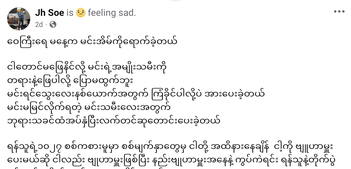 မလိုသူတွေ အသုံးချမခံနိုင်လို့ ငါ မတင်ရက်ဘူးကွာ