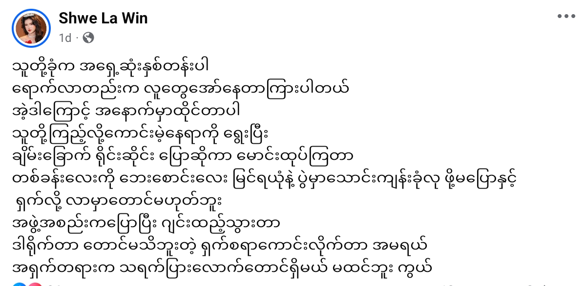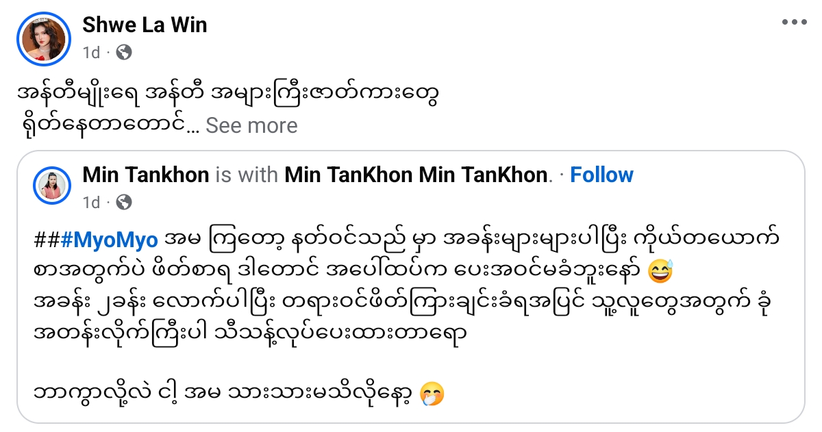 ကျွန်မကစွာတယ်၊ စရိုက်ကျတာမျိုးမဟုတ်ဘူး။