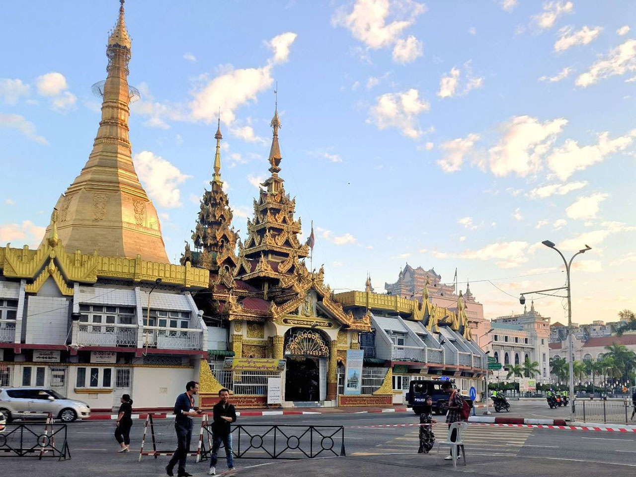 ရဲနဲ့ စစ်တပ်က လုံခြုံရေး ပူးပေါင်းယူထားတာ တွေ့ရပြီး အရင်နေ့တွေထက် ၃ ဆလောက် တိုးမြှင့်ထားတဲ့ အခြေအနေ ဖြစ်ပါတယ်။