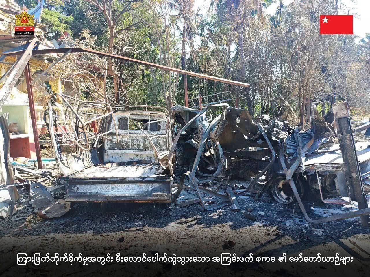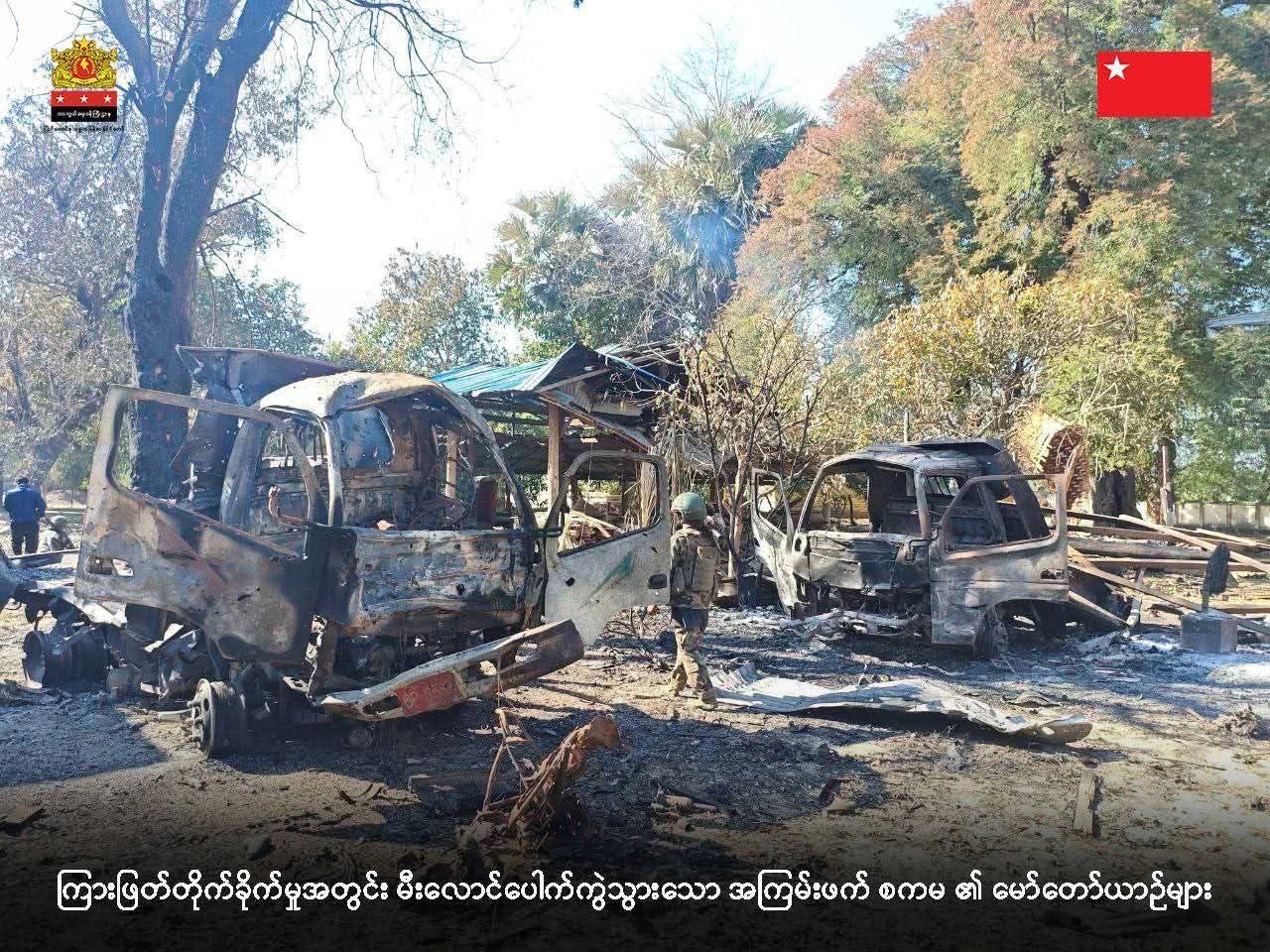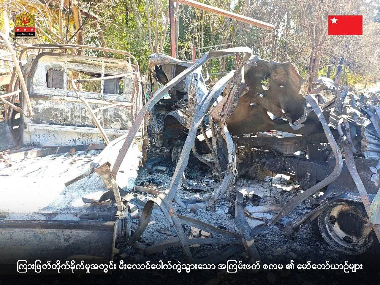 စစ်ကူစစ်ကြောင်းကိုတိုက်ခိုက် ကား ၅ စီးဖျက်ဆီးနိုင်ခဲ့ပြီး စစ်တပ်ထိခိုက်ကျဆုံးများ