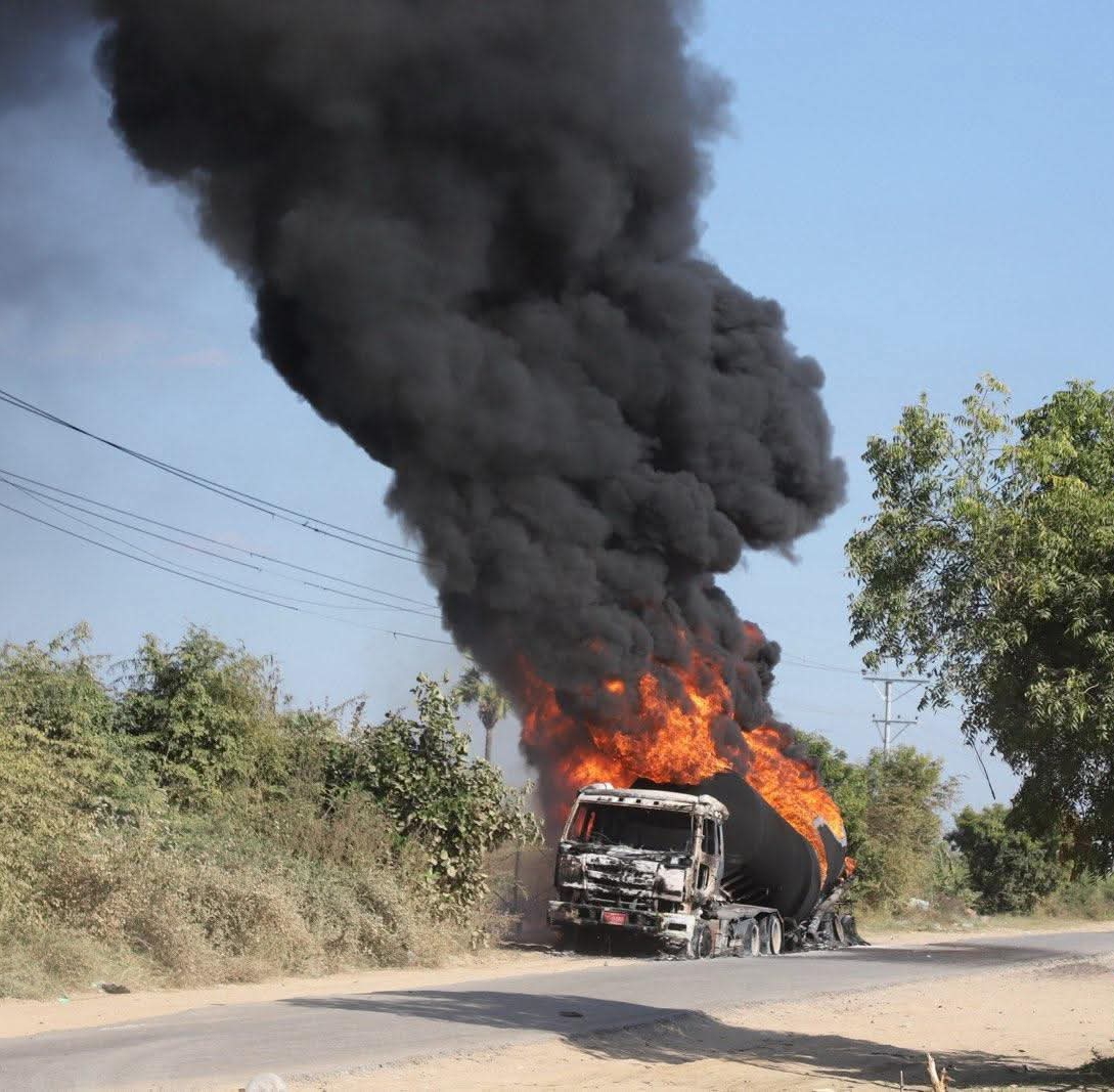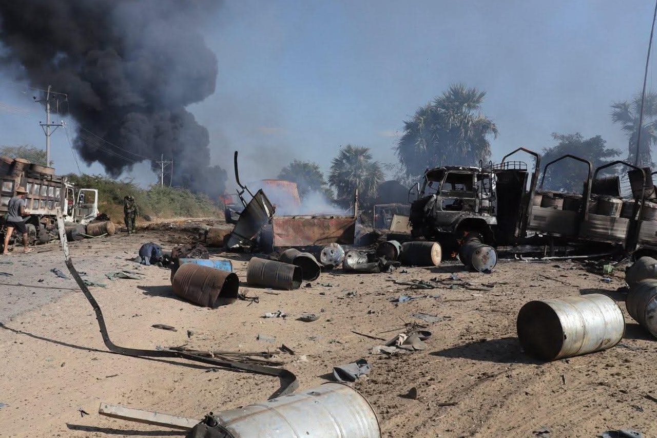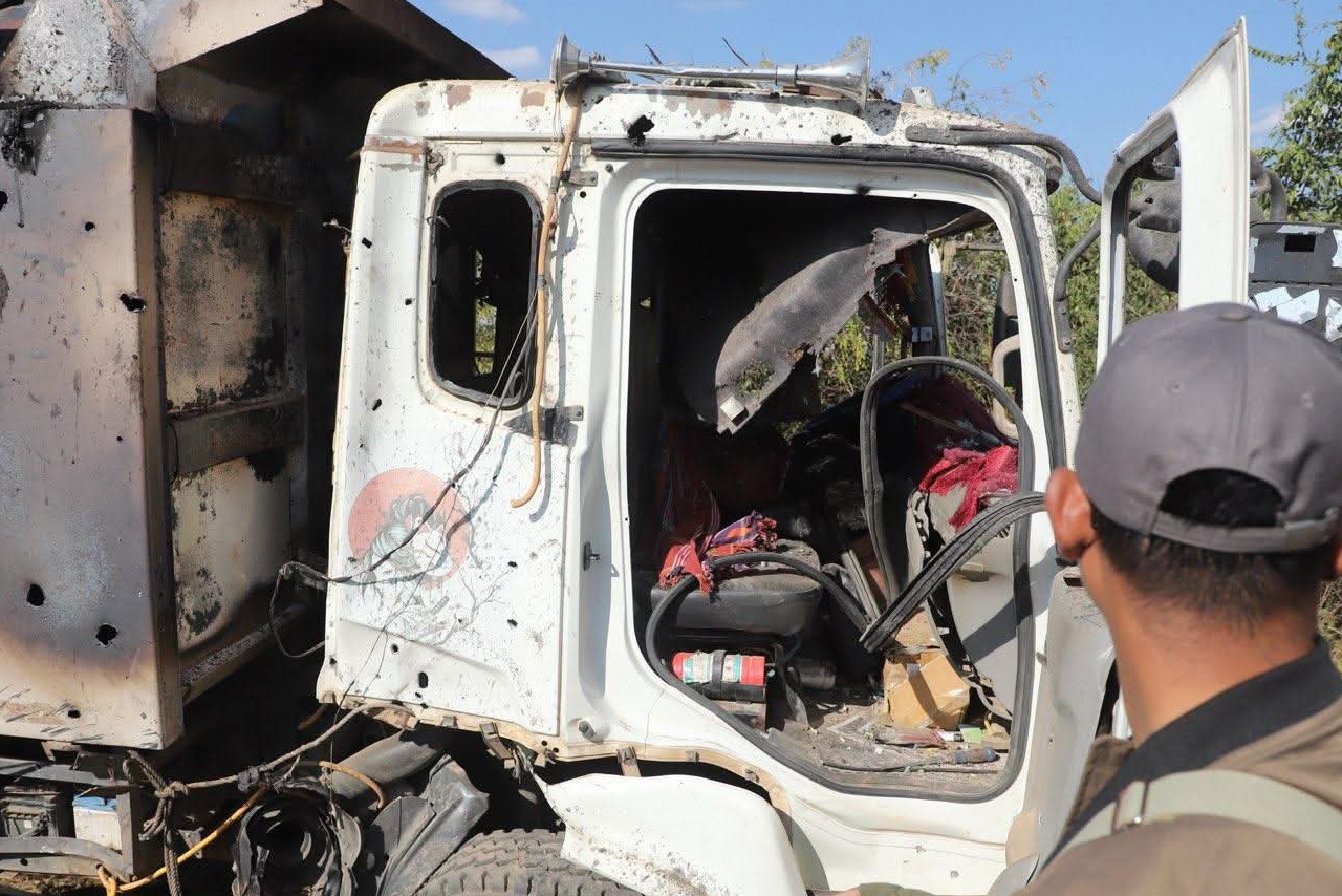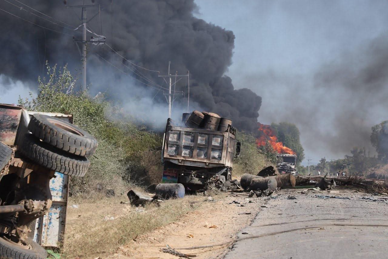 ခင်ဦးမြို့နယ်၊ မြေနီလျှိုကျေးရွာအရှေ့ဘက် ကုန်တင်ယာဉ်နှင့် ဆီသယ်ယာဉ်များ ရပ်နားလေ့ရှိသည့် စားသောက်ဆိုင်တန်းရှိ စတားလင့်အင်တာနက် အသုံးပြုသောနေရာနှင့် စားသောက်ဆိုင်တစ်ခုတို့ကို ဦးတည်ကာ မွန်းတည့် ၁၂ နာရီကျော်အချိန်၌ တိုက်လေယာဉ် တစ်စီး၊ MI 35 ရဟတ်ယာဉ် တစ်စီးတို့ ဖြင့် အကြိမ်ကြိမ် ပစ်ခတ်၊ ဗုံးကြဲခဲ့သည်။