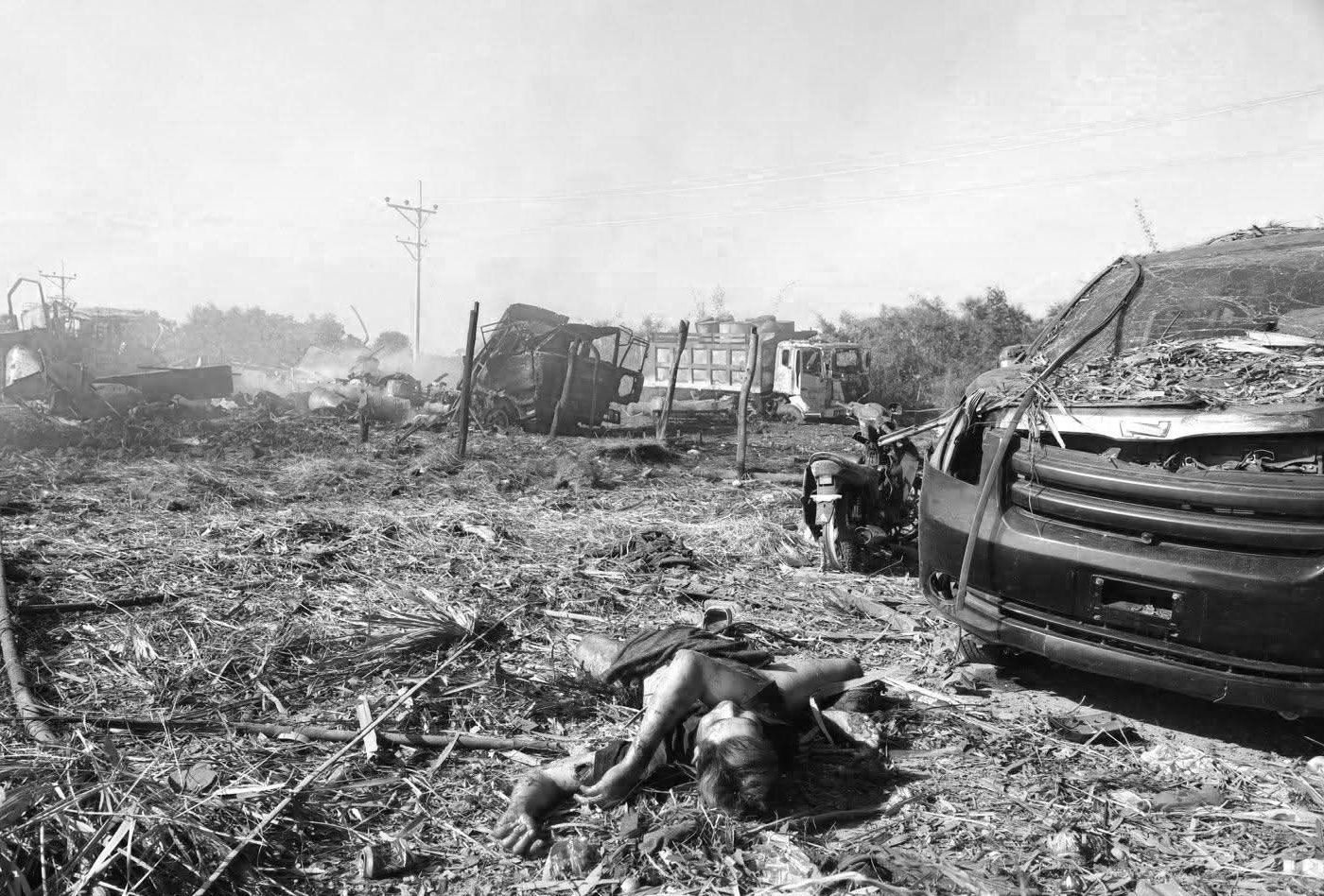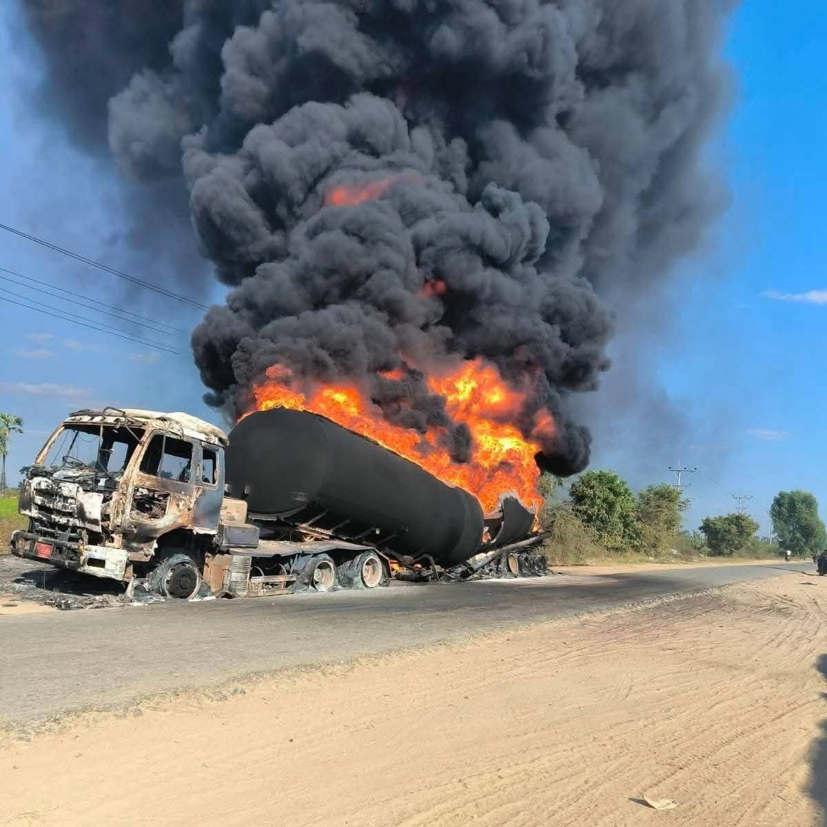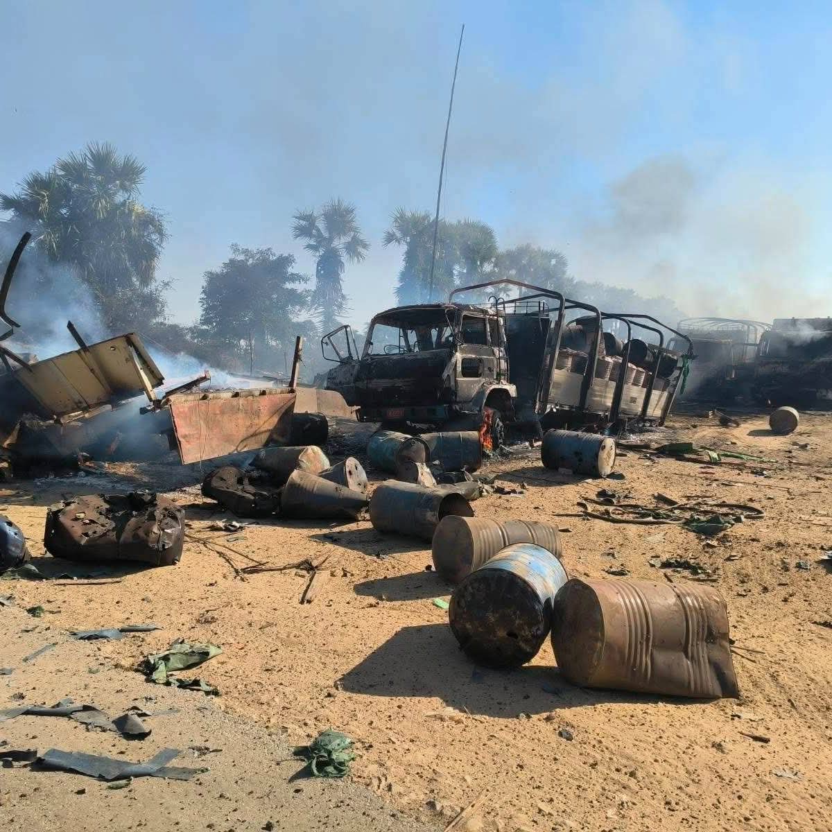 အဆိုပါလေကြောင်းတိုက်ခိုက်မှုကြောင့် လူသေဆုံးထိခိုက်မှုများအပြင် ဆီဘောက်ဆာ၊ ဆီသယ်ကားနှင့် ကုန်ကား စုစုပေါင်း ကိုးစီးခန့် မီးလောင်ပျက်စီးခဲ့သည်။