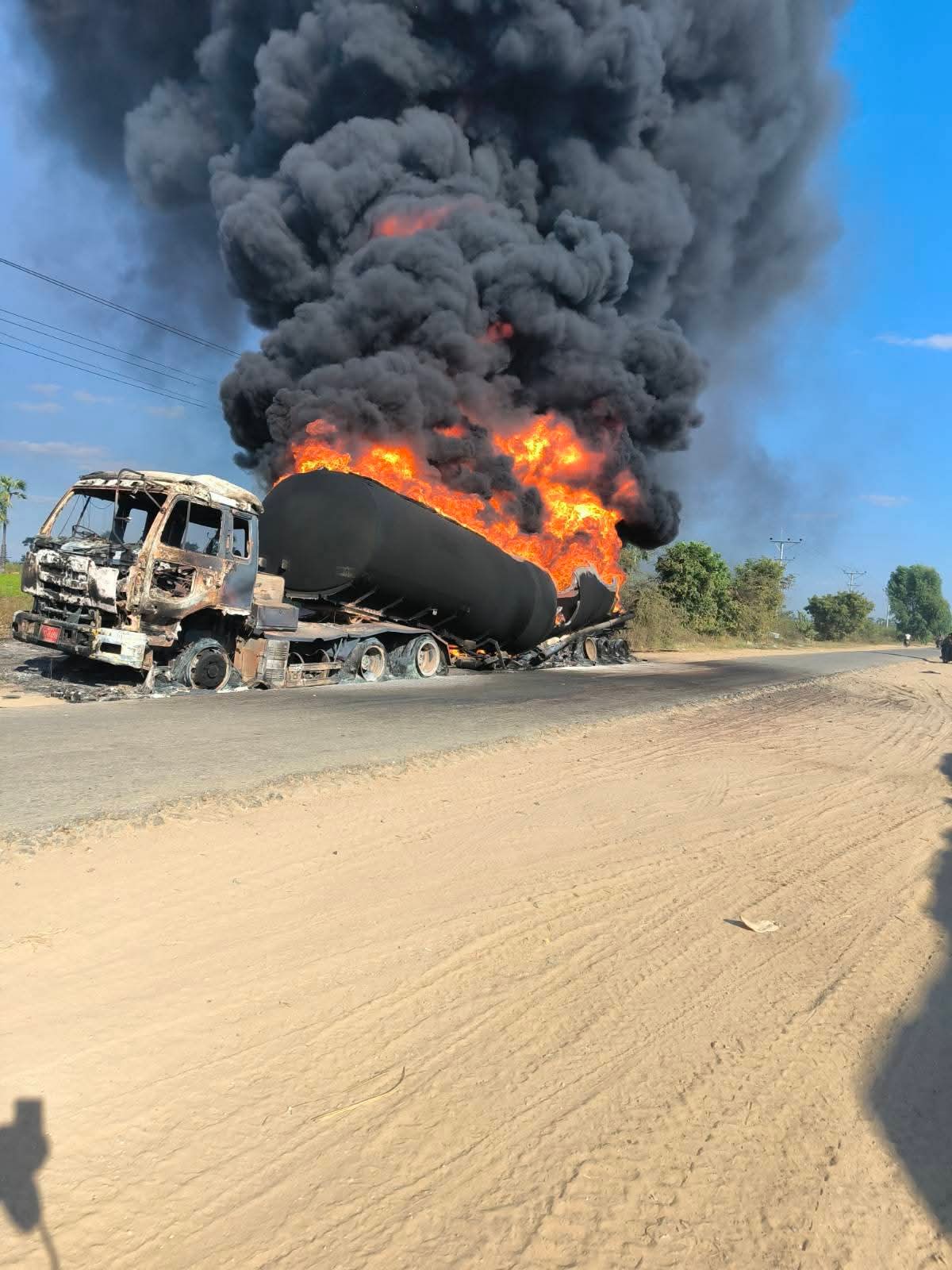 ပြီးခဲ့သည့် ဒီဇင်ဘာလ ၁၇ ရက်နေ့က ရွှေဘို-မြစ်ကြီးနားလမ်းပေါ်ရှိ ကုန်တင်ကားများ လမ်းပိတ်နေစဉ် လေကြောင်းမှပစ်ခတ်ဗုံးကြဲခဲ့မှုဖြစ်သောနေရာ (လက်ပန်ကုန်းရွာအနီး) ၏တောင်ဘက် နှစ်မိုင်ကျော်သာ ကွာဝေးသည်။