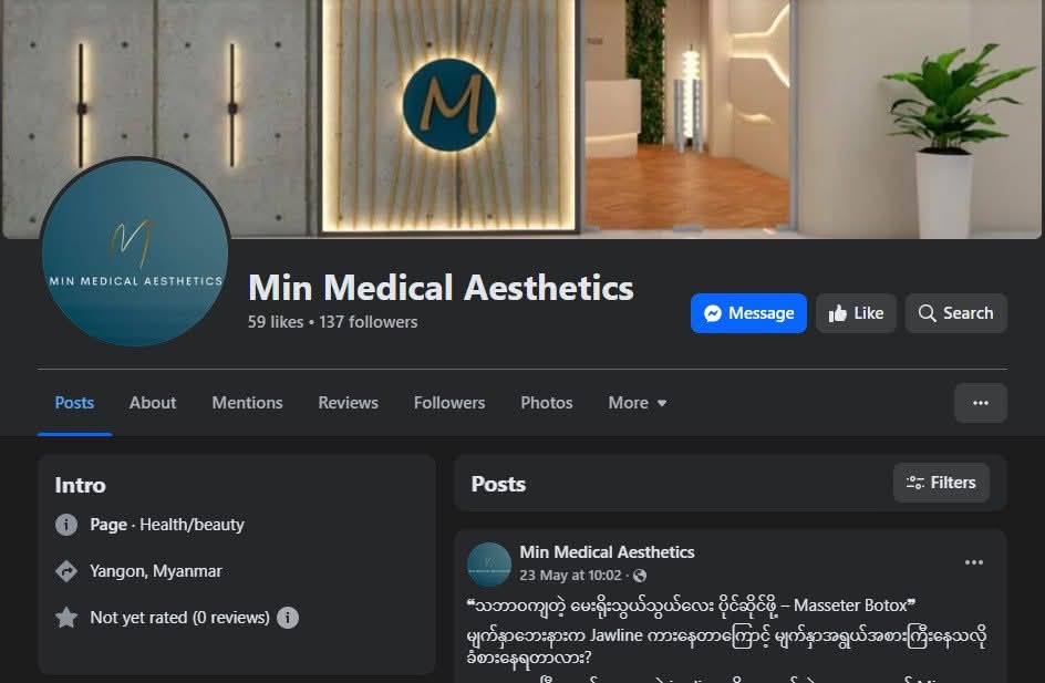 မင်းရဲမြတ်ဘုန်းခိုင်နဲ့သိကျွမ်းတဲ့ အမည်မဖော်လိုသူတစ်ဦးရဲ့ဖော်ပြချက်အရ မင်းရဲမြတ်ဘုန်းခိုင်အနေနဲ့ ယခု ရန်ကုန်မှာ အသစ်ဖွင့်လှစ်ထားတဲ့ “Min Medical Aesthetics” ဆိုတဲ့ အလှအပဆိုင်ရာဆေးခန်းနဲ့ ဆက်နွှယ်မှုရှိတယ်လို့သိရပါတယ်။