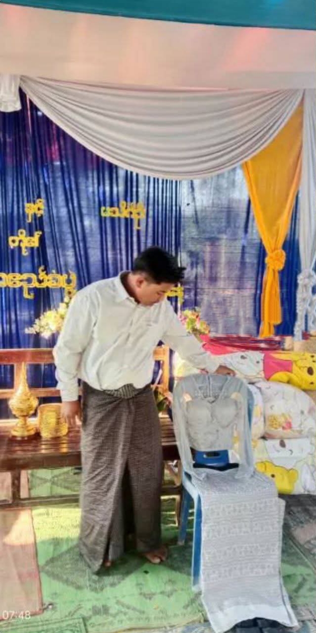 သတို့သမီးမရှိတော့တဲ့ ဒီမင်္ဂလာပွဲမှာ သတို့သမီး ဝတ်စုံလေးကို ဘေးမှာထားပြီး ထိမ်းမြားလက်ထပ်ခဲ့တဲ့ သတို့သားကို မြင်တွေ့လိုက်ရခြင်းက ကြေကွဲဝမ်းနည်းဖွယ် ကောင်းလိုက်တာ😪