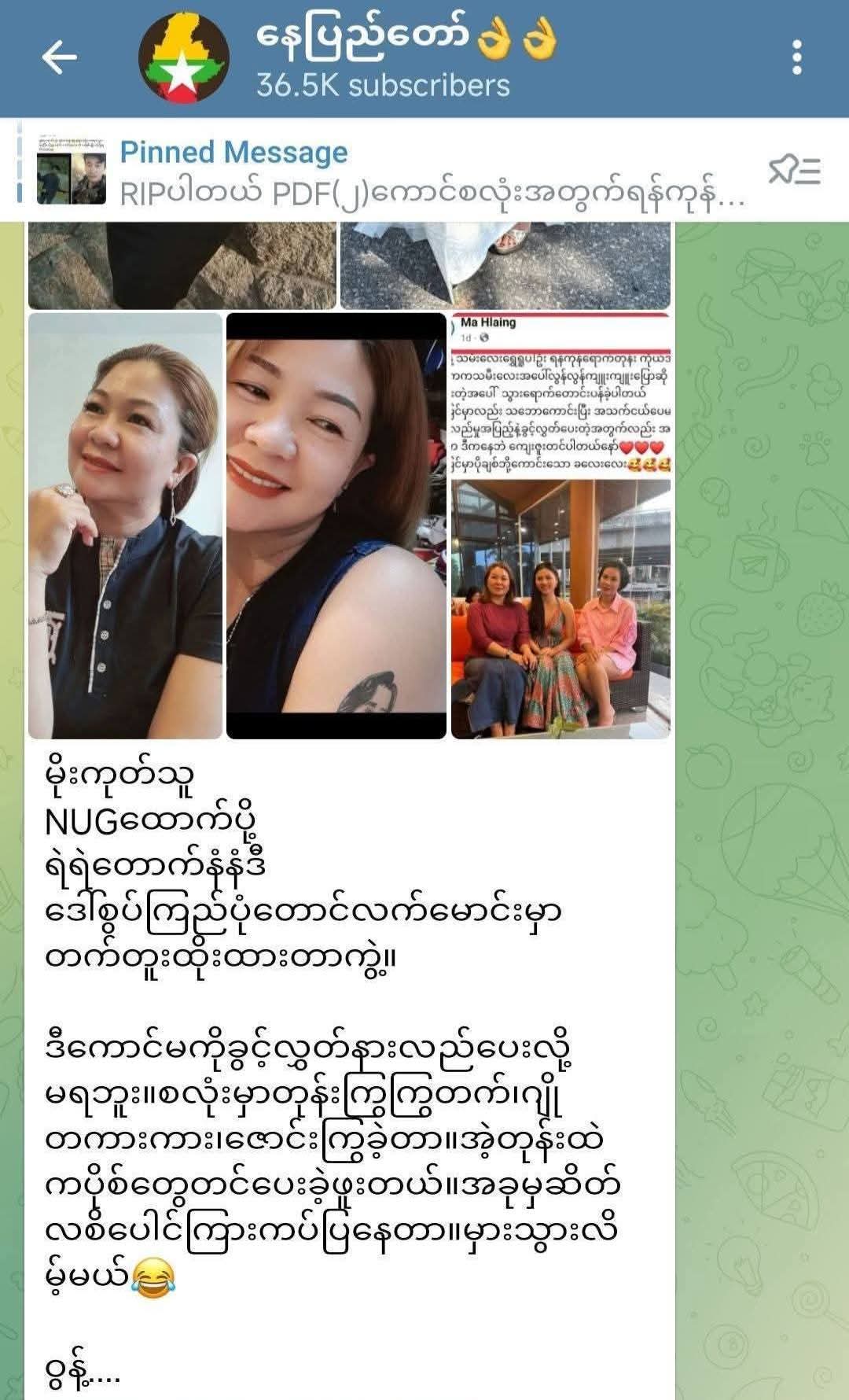 “အစ်မနဲ့ fri ဖြစ်တာ ကြာပြီ၊ ၂၀၂၂ ကတည်းက ထင်တယ်၊ စင်္ကာပူမှာ နေတုန်းက အမေစု အမေစုနဲ့ တက်တူးပါ အမေစုပုံ ထိုးထားတာ၊ အခုတော့ အကြမ်းဖက် NUG၊ PDF တဲ့လား၊ ကောင်းစားဖို့ တခုတည်းနဲ အလိုတော့ မပြောသင့်ပါဘူး၊ ကျမလည်း အစ်မ သမီး fan ပါ” လို့ အကြိုင် ရဲ့ အမေ့ပို့စ်အောက်မှာ မှတ်ချက်ပေးထားတာပါ။