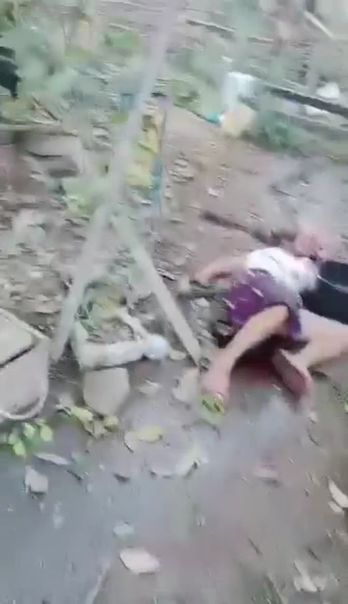 ဗုံးကြဲခံရပြီးနောက် သေဆုံးသူတဦး၏အလောင်းကို လူတစ်ဦးကကြည့်ရှုစဥ်နဲ့ ဗုံးကြဲခံပြီးနောက်မြင်ကွင်း