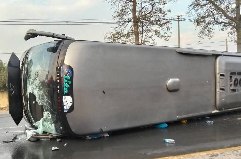 မန္တလေး – ပြင်ဦးလွင်လမ်းမှာ Elite Express ခရီးသည်တင်ယာဉ်တိမ်းမှောက်ခဲ့ပြီး အမျိုးသမီးတစ်ဦး ထိခိုက်ဒဏ်ရာ ရခဲ့ပါတယ်။