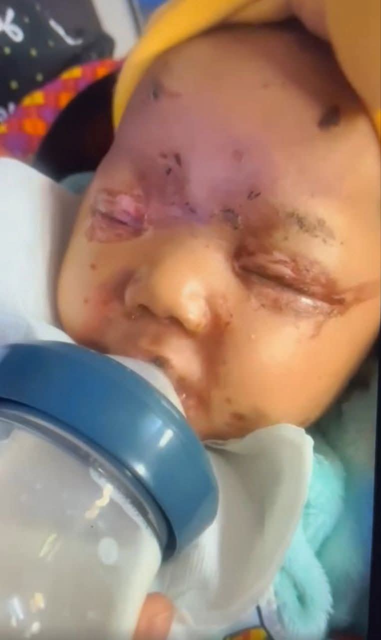 ဗုံးကြဲတိုက်ခိုက်ခံရမှုကြောင့် ကလေးငယ်ရဲ့ မျက်နှာမှာ လေယာဉ်ဗုံးစတွေ ထိမှန်ထားသလို မျက်လုံးတွေပါ ယောင်ကိုင်းနေတာတွေ့ရတယ်လို့ သူက ပြောပါတယ်။