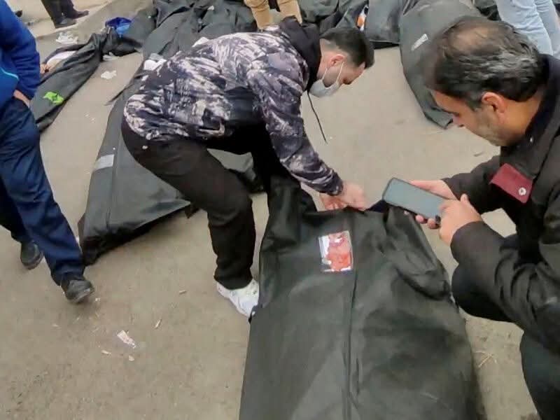 တီဟီရန်မြို့အရှေ့ပိုင်းမှ တီဟီရန်ပါးစ် ဆေးရုံတွင် အလောင်းများ ထပ်နေသည်ကို ဗီဒီယိုရိုက်ချက် အများအပြားတွင် မြင်တွေ့ရပြီး ရေတွက်ခဲ့ရာ၌ အနည်းဆုံး ရုပ်အလောင်း ၃၁ လောင်းရှိသည်ဟု ၎င်းဗီဒီယိုများကို တိုက်ဆိုင်စစ်ဆေးခဲ့သည့် BBC Verify က ဖော်ပြသည်။