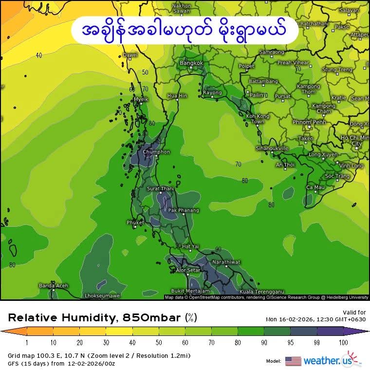 အခပေးဝယ်ယူထားတဲ့ မိုးလေဝသဒေတာများနဲ့ နာမည်ကြီး မိုးလေဝသမော်ဒယ်များအရ လာမယ့် ဖေဖော်ဝါရီလ ၁၆ ရက်မှ ၁၈ ရက်အတွင်း တနင်္သာရီတိုင်းထဲက ဒေသများမှာ အချိန်အခါမဟုတ် မိုးရွာဖို့ရှိပြီး နေရာကွက် မိုးအသင့်အတင့် ရွာပါမယ်။