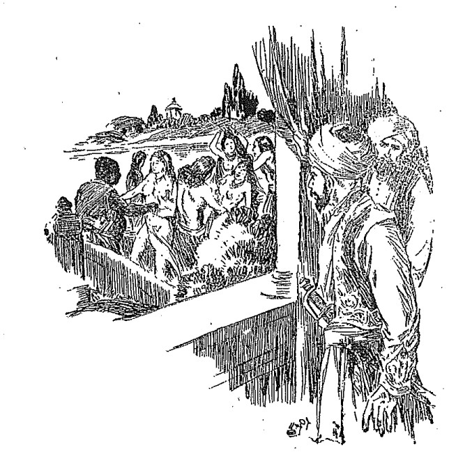 ထိုနောက် အပျိုတော် တစ်ကျိပ်သည် ကျွန်ယောက်ျား တစ်ကျိပ်နှင့် ဒွယံ ` ဒွယံ စည်းစိမ်ခံကြကုန်၏။ ထိုအခိုက်တွင် ယာဠိယ မင်းကြီး၏ မိဖုရားခေါင်ကြီးမှာ အဖော်ကင်းမဲ့ ဘိသကဲ့သို့ ရှိသော်လည်း ခဏချင်းတွင်ပင် “အို … ခင်မ အချစ်ဆုံး၊ စစ်စေးပုံးကြီးရှင့်” ဟု အချက်ပေးလိုက်ရာ အိုးစရည်းကဲ့သို့ အိုင့်ကြီးသော ဝမ်းလည်း ရှိထသော၊ မည်းတုတ်တုတ် ပုကွကွ အချိုးမကျလှသော ကြာခို ယောက်ျား သူကောင်း သား တစ်ယောက်သည် ရုတ်တရက် ပေါ်ထွက်၍ လာတဲ့ပြီးလျှင် မိဖုရားကြီး ရှိရာဆီသို့ စိုက်စိုက်ကြီးလာ၍ မနောတော်ဖြူ သဘောတော် တူနှင့်ပြီး ဖြစ်သည့် မိဖုရားခေါင်ကြီး နှင့် အကြောင်းဆက်၍ ပေါင်းဖက်ကြသော ဟူသတတ်။