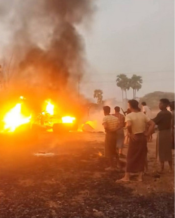 ဓာတ်ဆီဆိုင်မှာ ဆီဖြည့်နေစဉ်အတွင်း မတော်တဆမှုဖြစ်ပွားပြီး ဓာတ်ဆီကား တစ်စီးလုံး မီးဟုန်းဟုန်းတောက် လောင်ကျွမ်းခဲ့ပါတယ်။