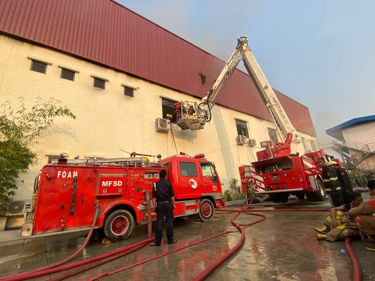 မြေပြင်ကနေ နောက်ဆုံးရရှိတဲ့ သတင်းအရ M-Brother စက်ရုံရဲ့ ဘေးနားကပ်လျက်က နေရွှေဝန်း အထည်ချုပ်စက်ရုံကိုပါ ကူးစက်လောင်ကျွမ်းနိုင်တဲ့ အနေအထားရှိနေတယ်လို့လည်း သူက ပြောပါတယ်။
