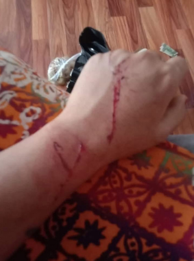တိုက်ခန်းအတွင်း ဝင်ရောက်လုယက်စဉ် အော်ဟစ် အကူညီတောင်းတာကို လုယက်သူက ဓားနဲ့ ယမ်းခဲ့ လို့ အလုခံရတဲ့ အမျိုးသမီးတယောက် ဘယ်လက် နဲ့ ညာလက် နှစ်ဖက်လုံး ဓားဒဏ်ရာတွေ ရရှိခဲ့ပါ တယ်။