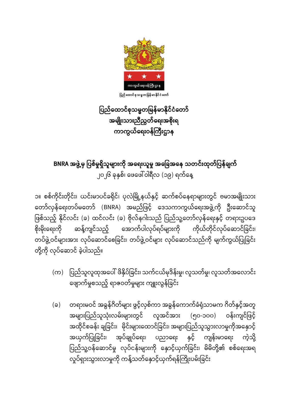 ပြစ်မှုကျူးလွန်ထားခြင်းမရှိတဲ့ BNRA တပ်ဖွဲ့ဝင်တွေ အနေနဲ့ ဆန္ဒရှိပါက PDF နဲ့ ပကဖ အဖွဲ့တွေမှာ ပူးပေါင်းပြီး တော်လှန်ရေး ဆက်လက်ဆင်နွှဲနိုင်ဖို့ စီစဉ်ပေးမယ်လို့ အသိပေးထားပါတယ်။