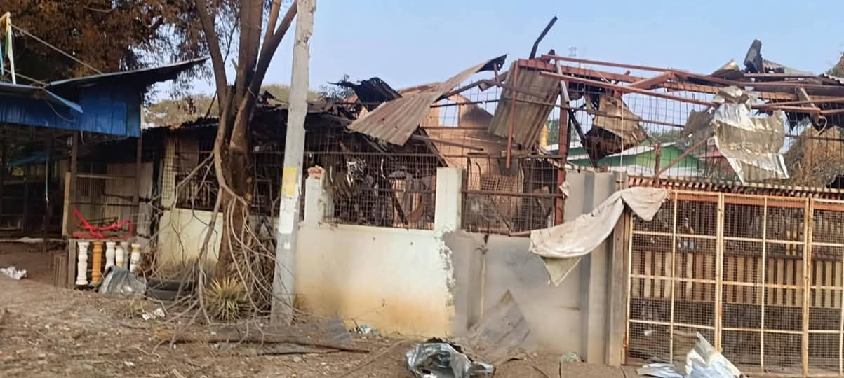 မန္တလေးတိုင်း၊ မြင်းခြံခရိုင်၊ တောင်သာမြို့နယ် ရုံးစည်ကြီးရွာကို စစ်အုပ်စုက လေကြောင်းဗုံးကြဲပစ်ခတ်လို့ နေ ပြည်တော်ညွှန်ချုပ်မိသားစုပိုင်တဲ့ ကုန်စုံဆိုင် ထိမှန်မီးလောင်ပျက်စီးခဲ့တယ်လို့ ဒေသခံသတင်းရင်းမြစ်ကပြောပါတယ်။