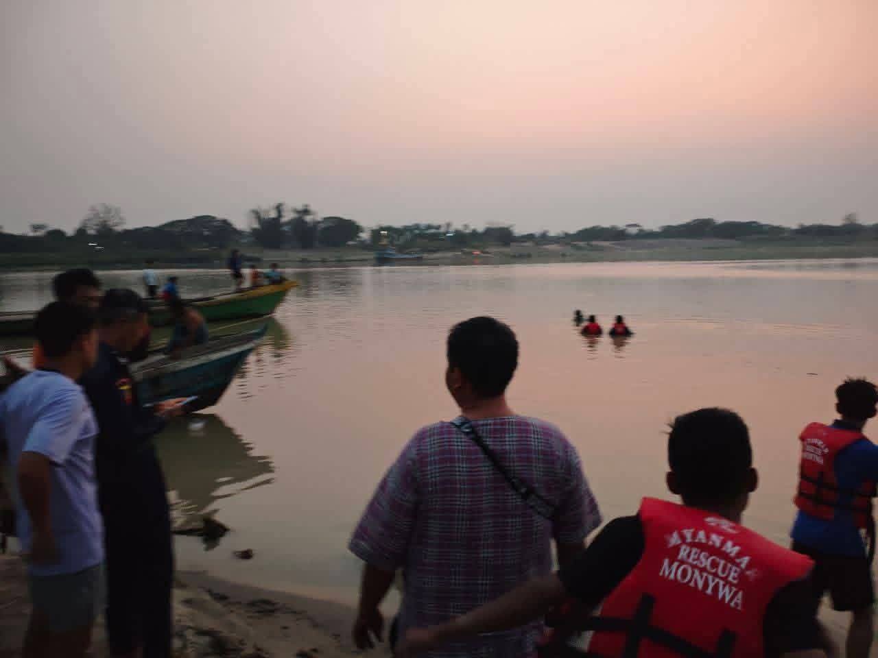 သို့သော် ကျန်တဲ့ ယောက်ျားလေး ၁ ဦး၊ မိန်းကလေး ၂ ဦးကိုတော့ ညပိုင်းအထိ ရှာမတွေ့သေးလို့ ရေငုပ်ရှာဖွေနေရဆဲဖြစ်ကြောင်း မြန်မာနိုင်ငံလူမှုကယ်ဆယ်ရေးအဖွဲ့ (မုံရွာမြို့နယ်ရုံး)က အသိပေးပါတယ်။