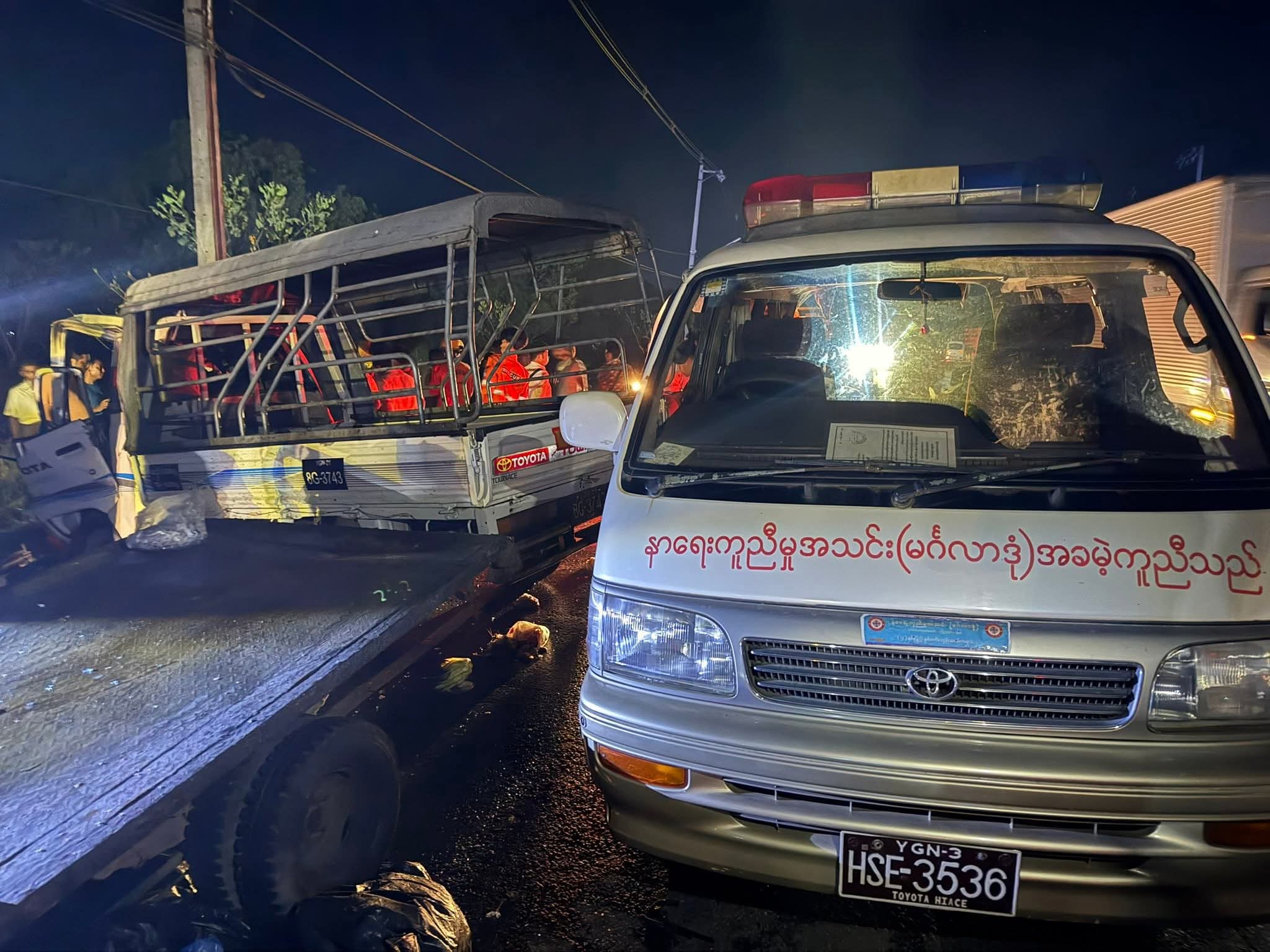 ယာဉ် ၃ စီးတိုက်မှုကြောင့် Light Track ကား ခေါင်းခန်းမီးလောင်ကာ ယာဉ်မောင်း သေဆုံးခဲ့ပြီး ကျန်ကားပေါ်လူတွေက ထိခိုက်ဒဏ်ရာရခဲ့တယ်လို့ သိရပါတယ်။