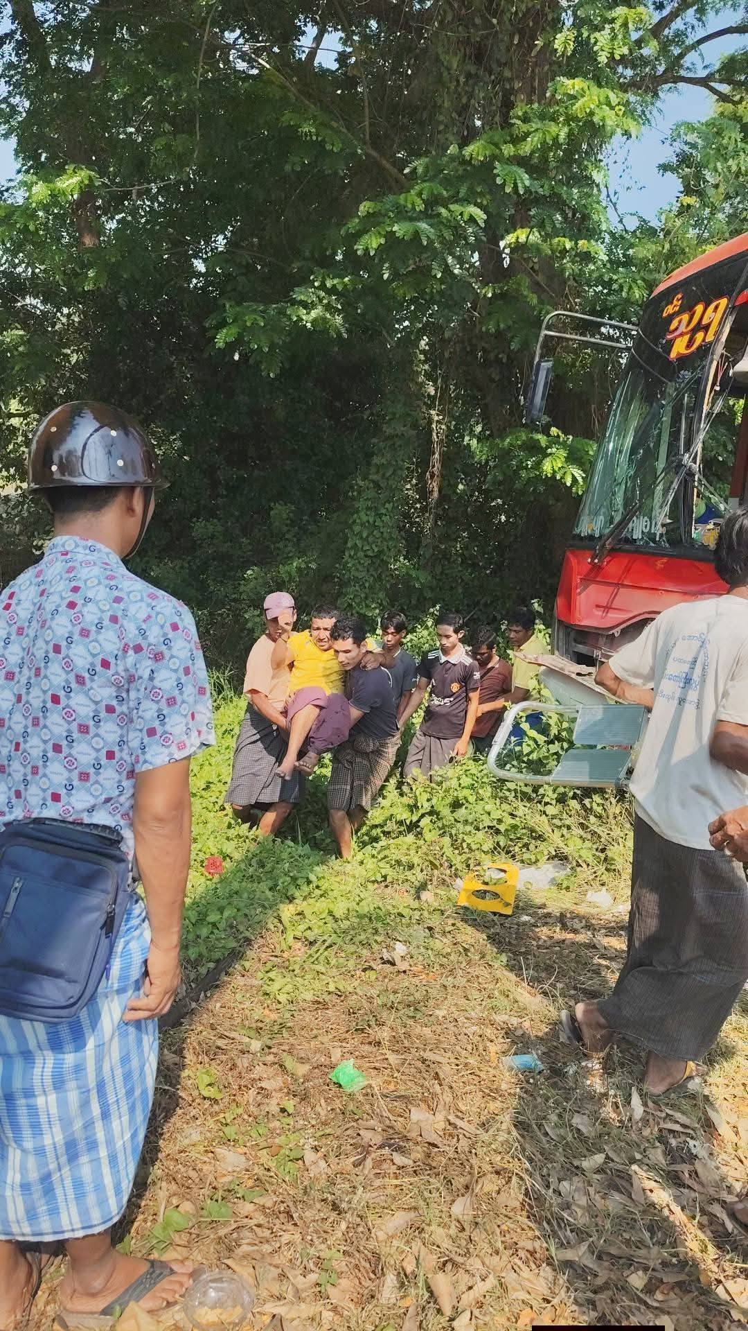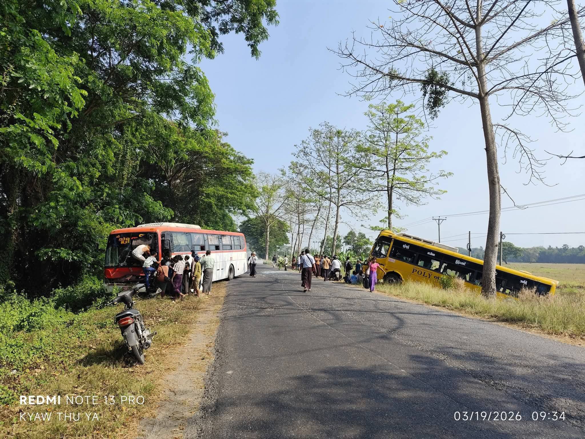ထိခိုက်မှုအခြေအနေ – ယာဉ်နှစ်စီးစလုံး လမ်းဘေးသို့ ထိုးကျသွားခဲ့ပြီး ခရီးသည်အချို့ ဒဏ်ရာရရှိခဲ့သည်။
