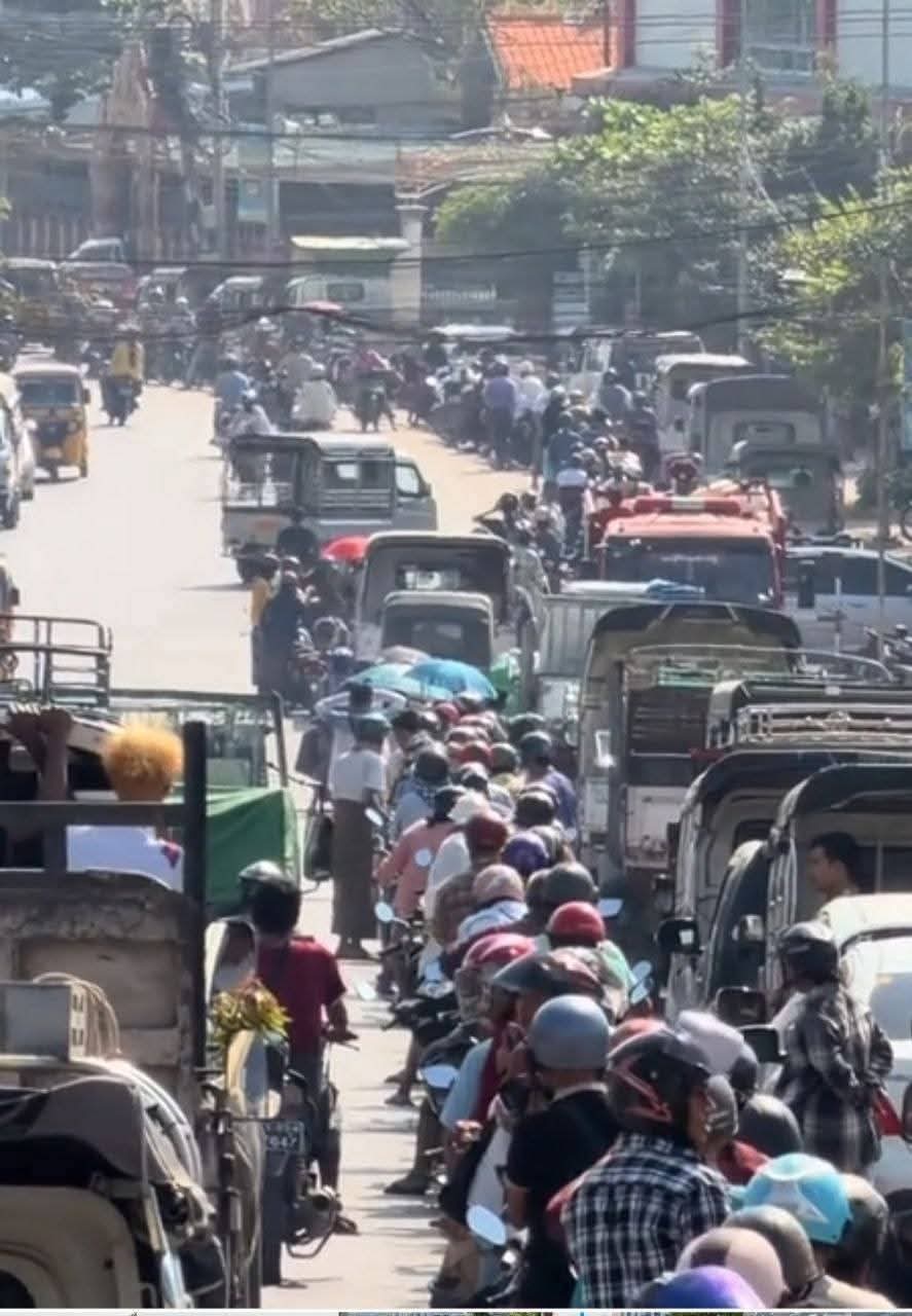 “ဒီနေ့ပိုဆိုးတယ်။ မနက် ၇ နာရီကစပြီး ညနေ ၅ နာရီအထိဓါတ်ဆီ တောက်လျှောက်ထည့်နေတာတောင် ဒီအတန်းကြီးက မလျော့ဘူး။”လို့ မြို့ခံတစ်ဦးက ပြောပါတယ်။