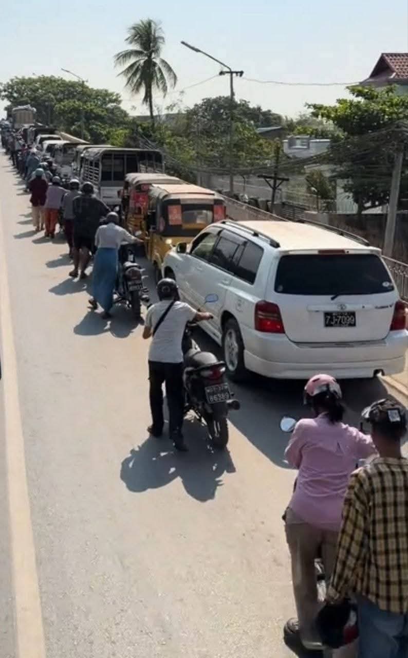 ဆိုင်ကယ်နဲ့ မော်တော်ယာဉ်တန်းတွေဟာ ယခင်ကထက် ရှည်လျားစွာ တန်းစီနေကြရပြီဖြစ်ပါတယ်။