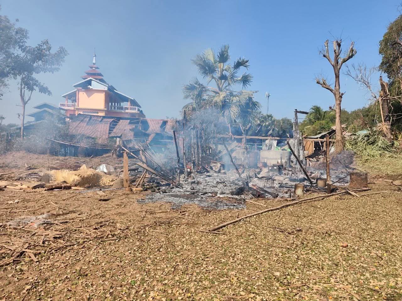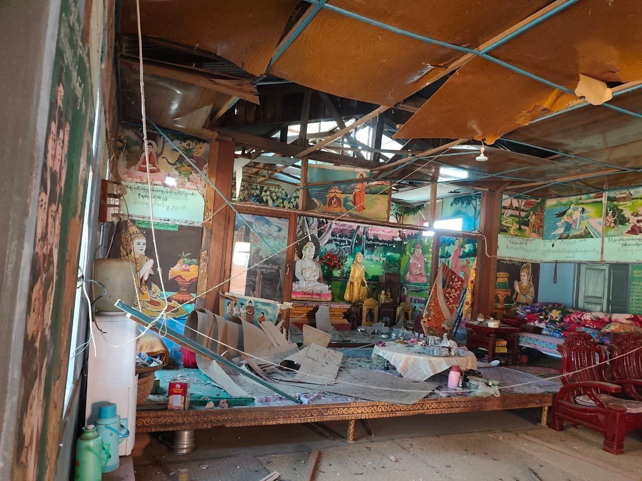 “လက်ရှိအထိတော့ အထိအခိုက်ရှိတယ်ပဲ သိရသေးတယ်၊ ဘုန်းကြီးကျောင်းပေါ်တည့်တည့်ကျ တယ်၊ သူတို့ကို ထမင်းဟင်းချက်ကျွေးနေတဲ့ စားဖိုတွေရော အကုန်လုံးမီးလောင်သွားတာ။ အဲဒီ အပေါ်တွေ တည့်ကျတာဆိုတော့ ။ ဂျက်ဖိုက်တာနဲ့ ၂ ကြိမ်လာကျဲသွားတာ၊ ဘယ်နှစ်ယောက်ထိ တယ်၊ သေတယ် တိတိကျကျမသိရသေးဘူး။ တချို့ဟာတွေက အခုမှ ဆွဲထုတ်နေတုန်းပဲရှိ သေး တာ။ ထိခိုက်တာတွေ တော်တော်များတယ်လို့ သိရတယ်။” ဟု မြိုင်ပကဖ မှ ဗိုလ်Cross က ပြောကြားသည်။