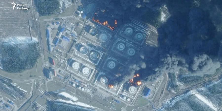 ယူကရိန်း ဒရုန်းတိုက်ခိုက်မှုကြောင့် ရုရှား၏ ဘောလ်တစ် ရေနံဆိပ်ကမ်း အကြီးအကျယ် မီးလောင်