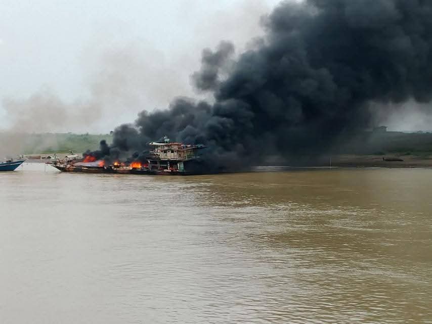 မနေ့က မတ် ၂၉ ရက်နေ့ ၊ နေ့လယ် ၁ နာရီကျော်လောက်မှာ စက်လှေတွေမီးစတင်လောင်ကျွမ်းခဲ့တာဖြစ်ပြီး မီးစတင်လောင်ကျွမ်းခဲ့တဲ့ စက်သုံးဆီတင်စက်လှေတစီးကတော့ ဒီနေ့ မတ် ၃၀ ရက်နေ့ ညနေအထိလည်း မီးလောင်နေဆဲဖြစ်တယ်လို့ သိရပါတယ် ။